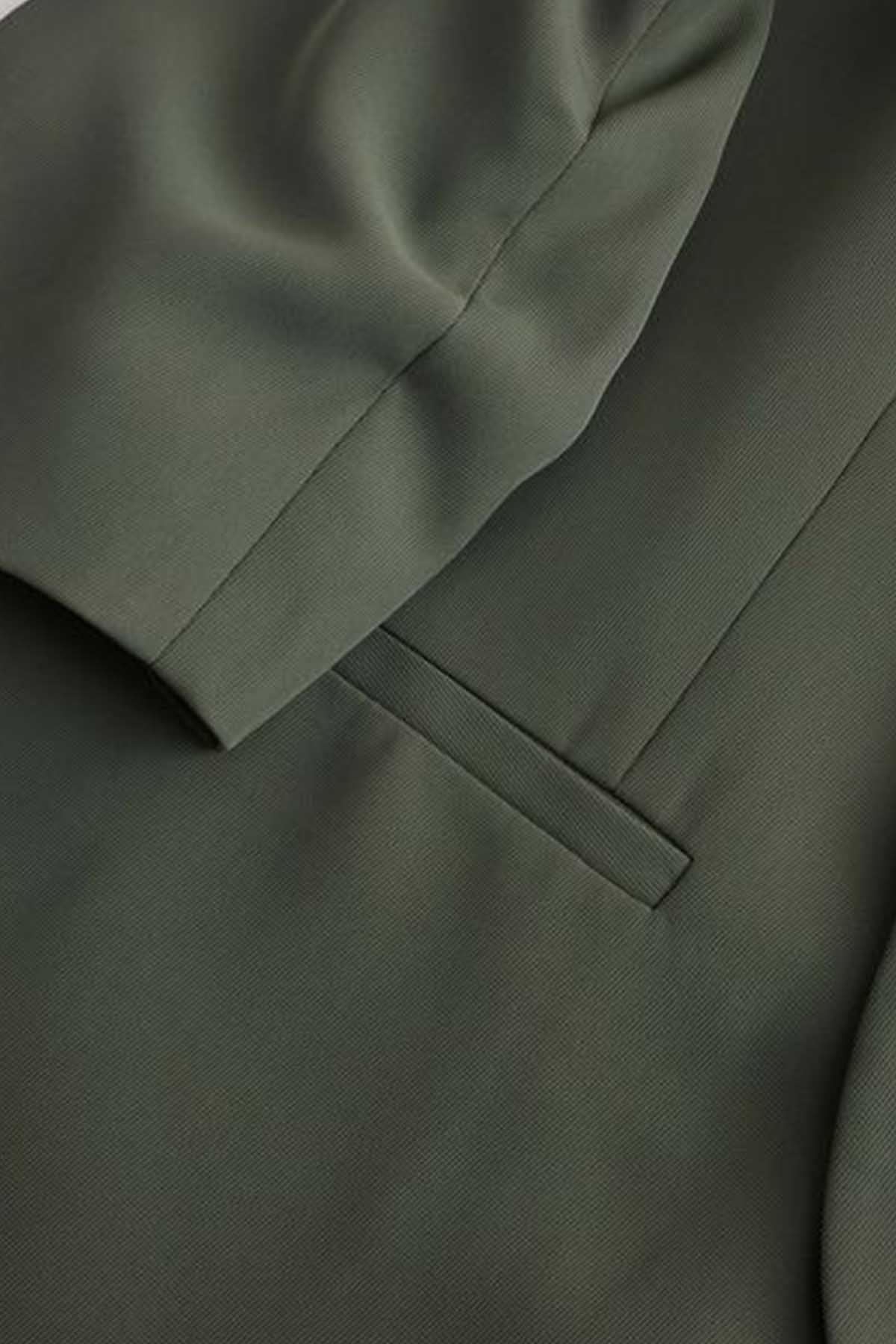 Khaki Green Relaxed Ruched Sleeve Blazer