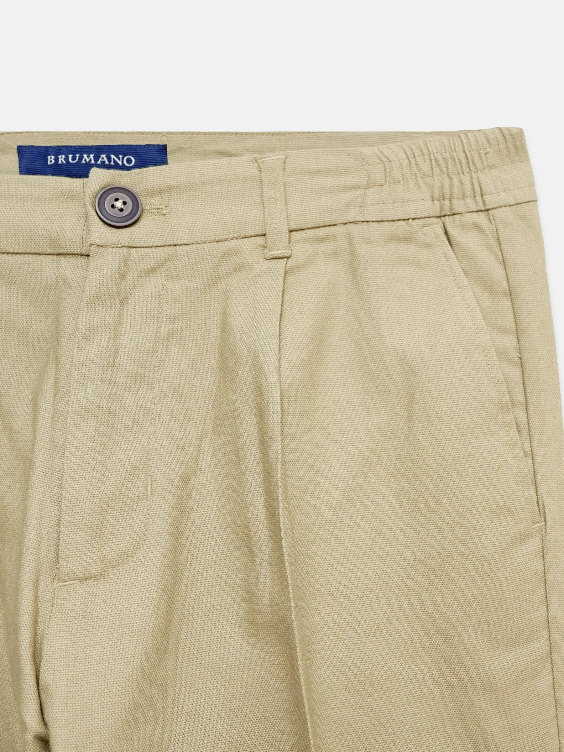 Khaki Linen Comfort Waist Chinos With Pleats