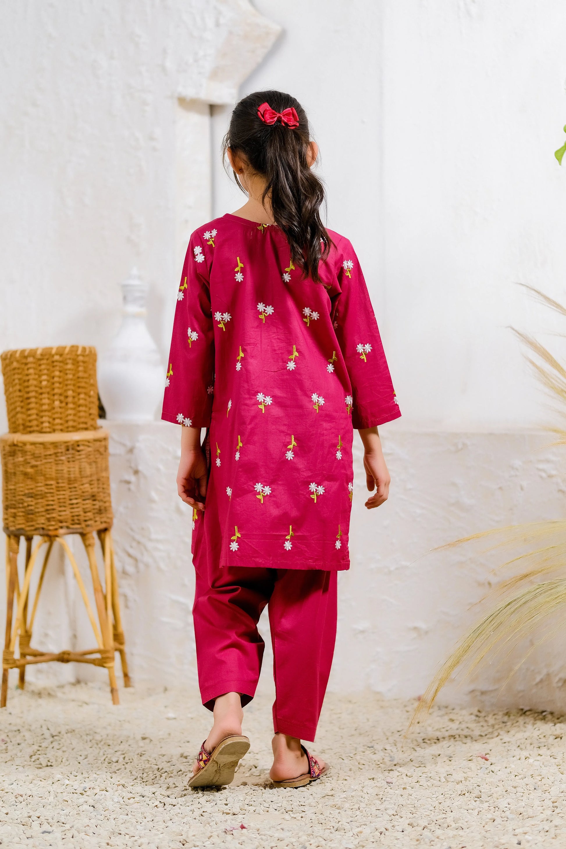 The Berry Blossom dress showcases dainty white flowers embroidered on a rich berry-red fabric. This outfit exudes charm and grace, making it ideal for kids who enjoy both elegance and a touch of nature-inspired design.