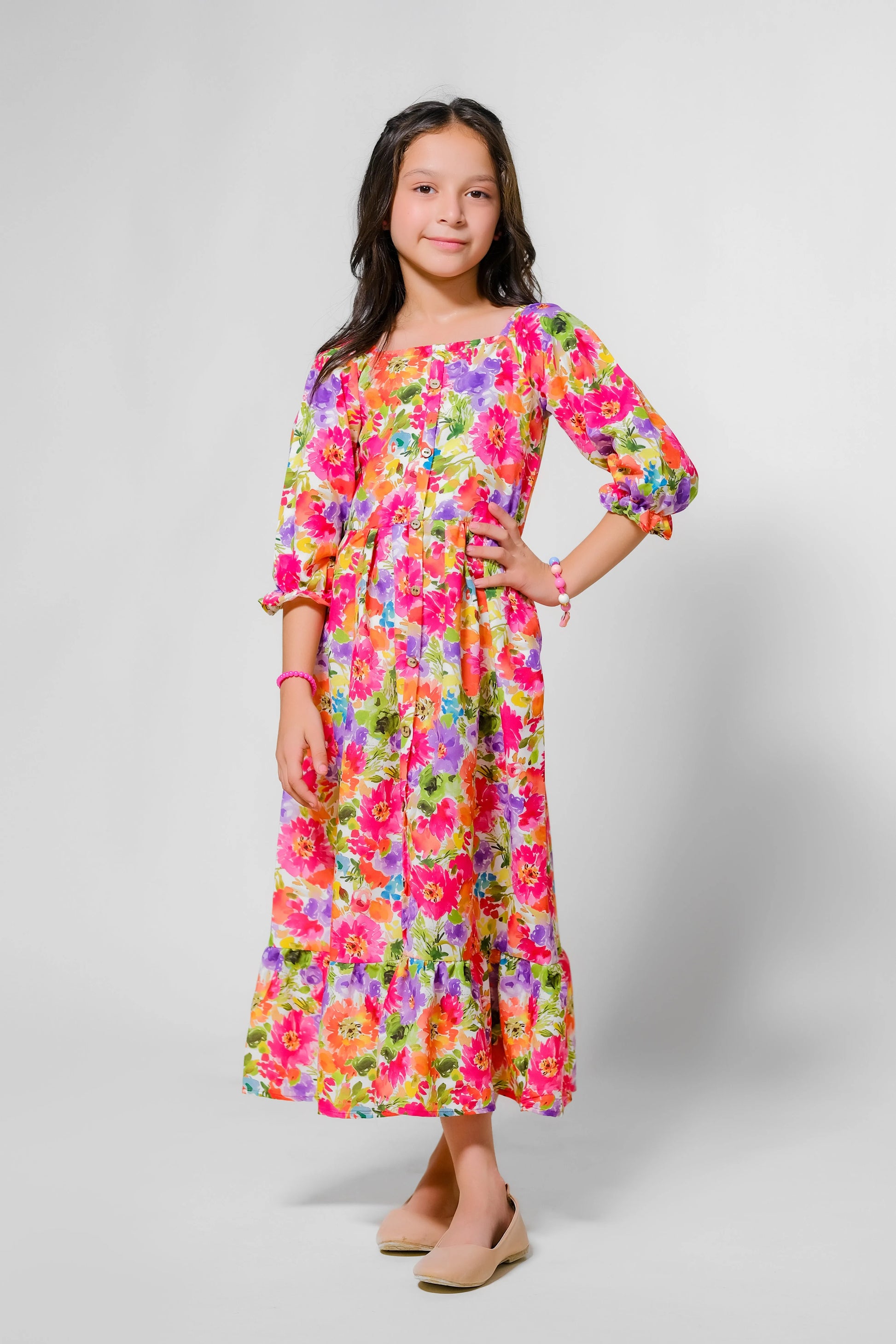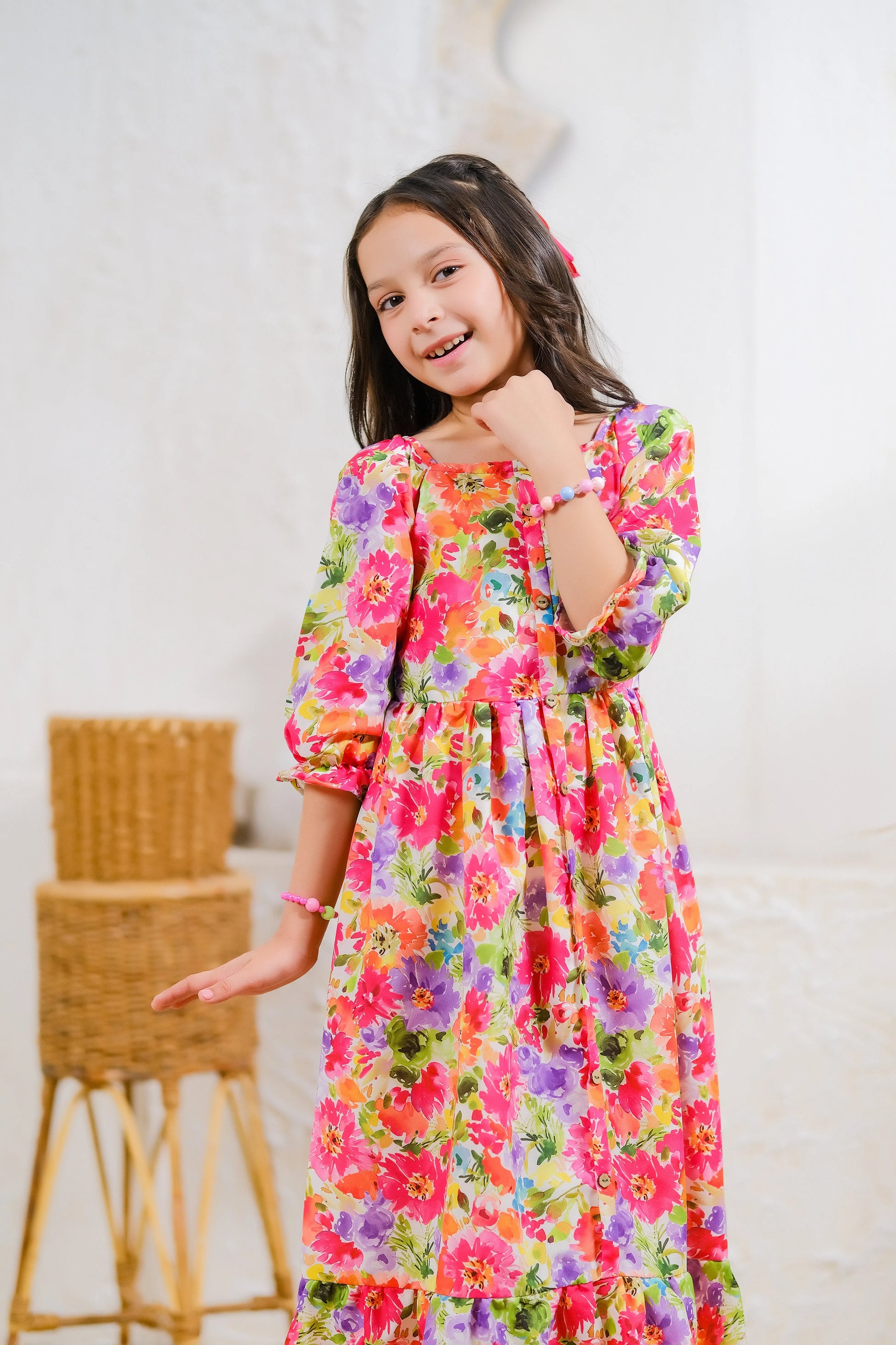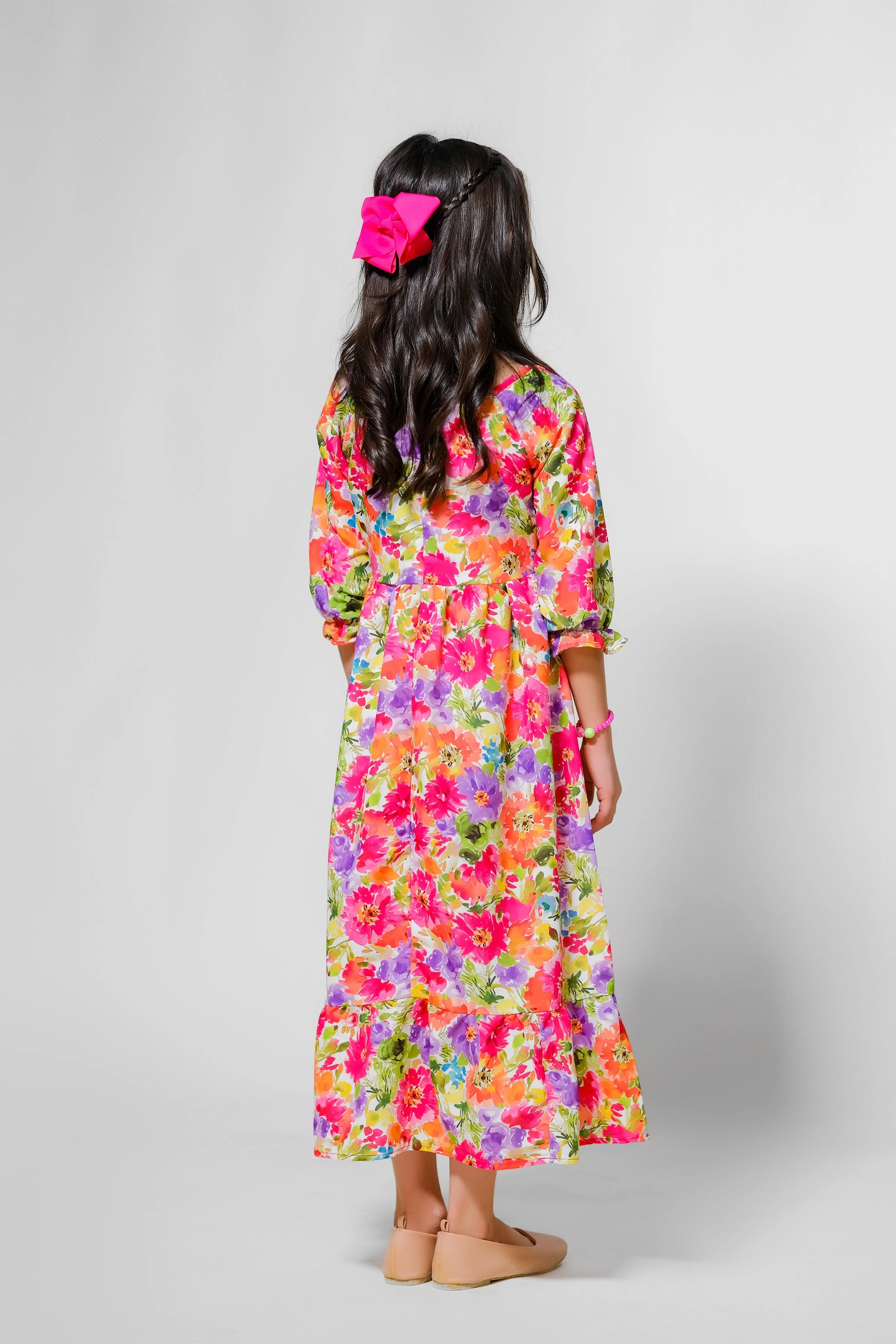 The Sunshine Blooms tunic offers a splash of radiant florals in pinks, oranges, and greens. This lively tunic is ideal for kids who love to stand out with bright, happy colors that light up the room.