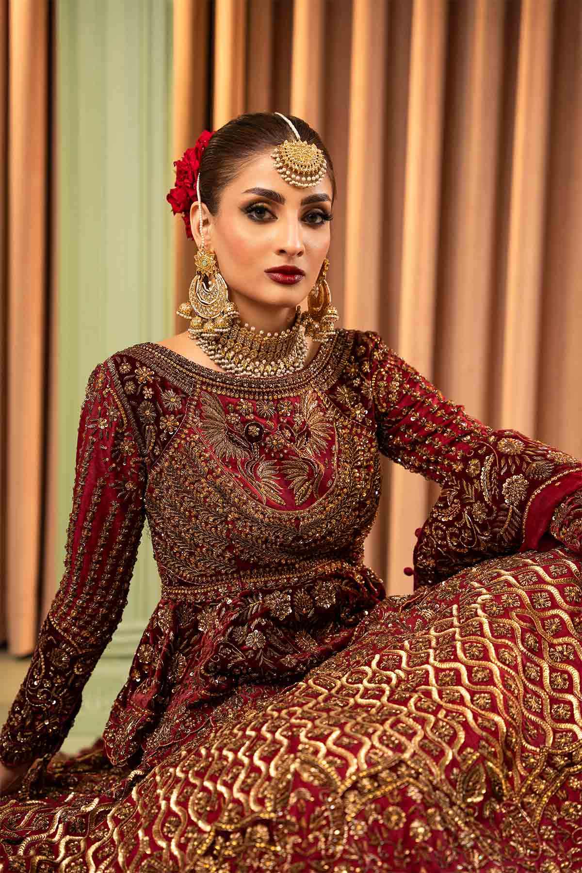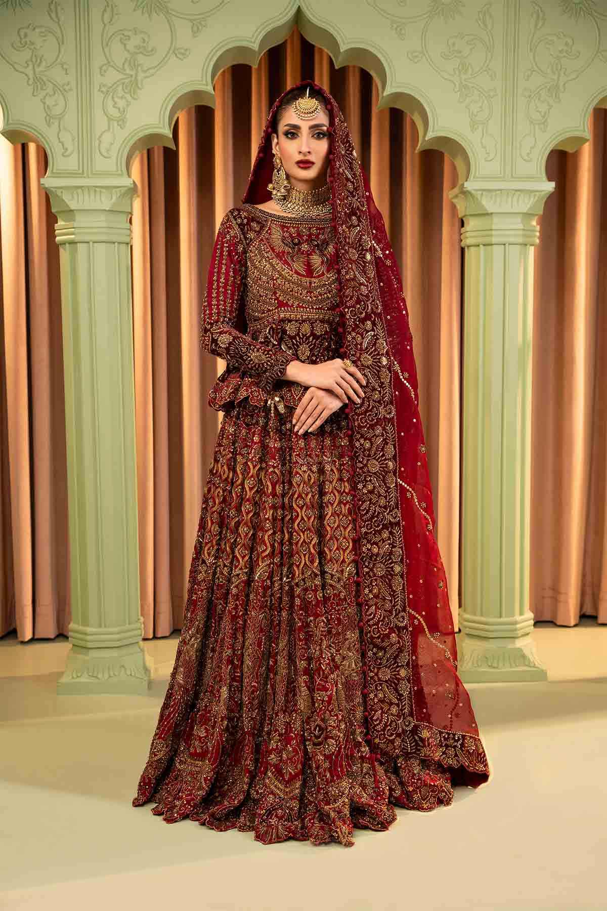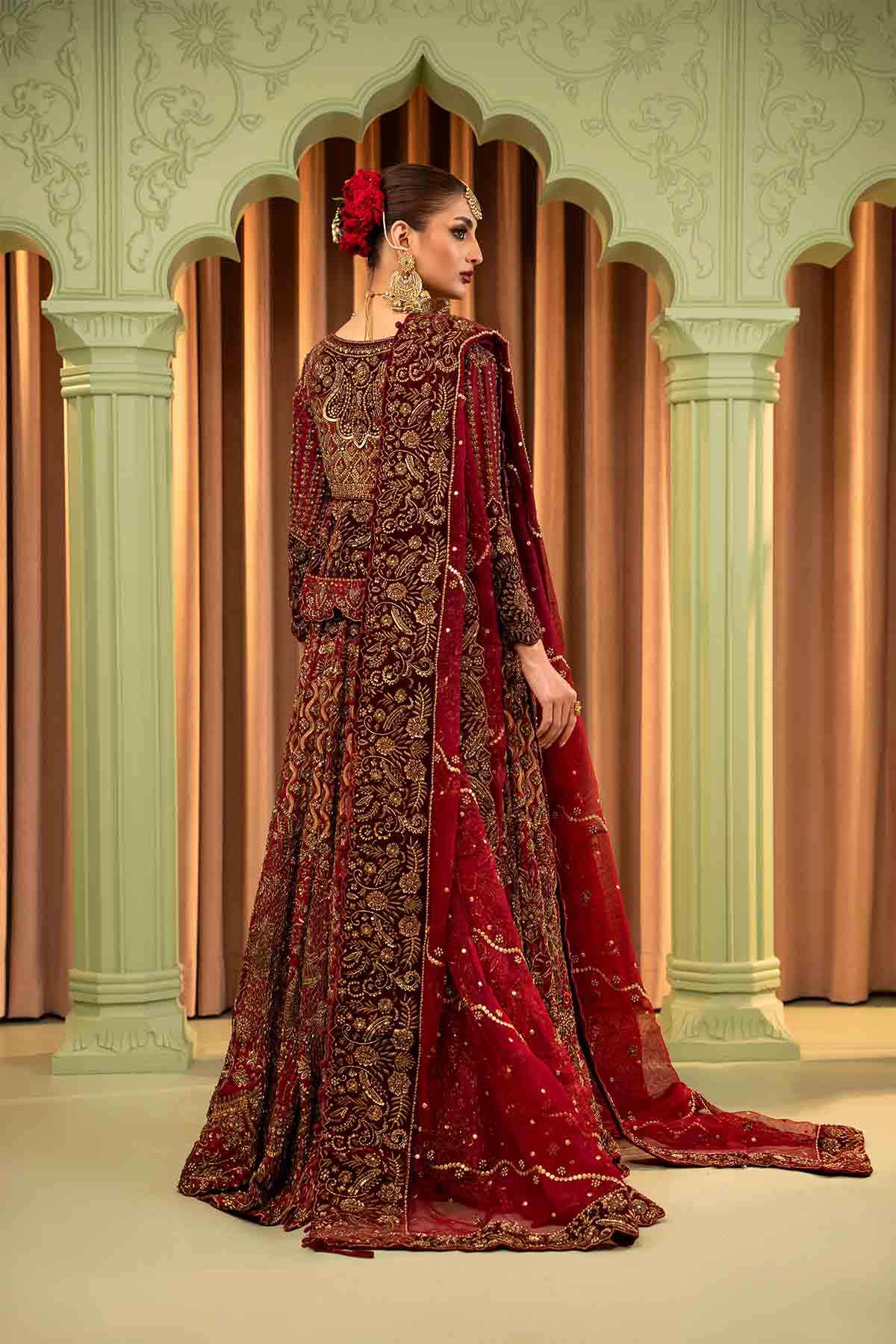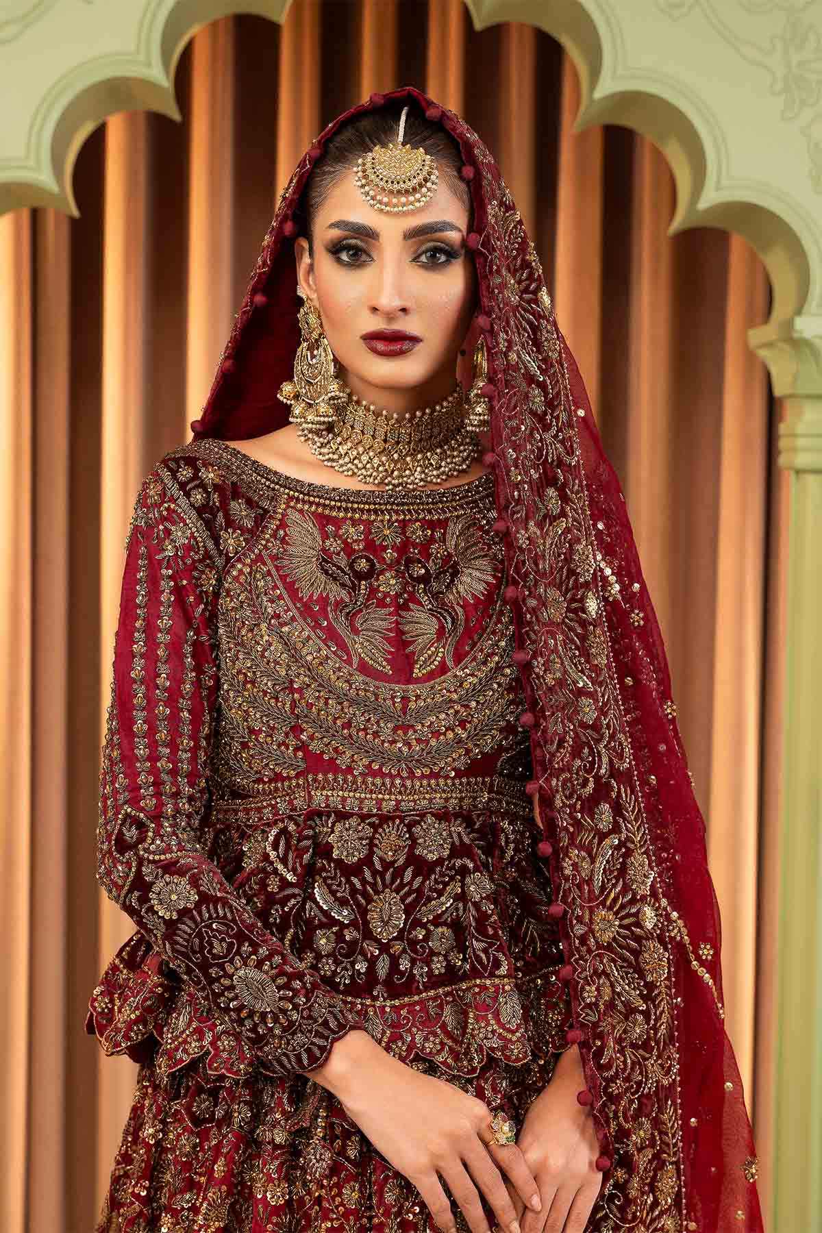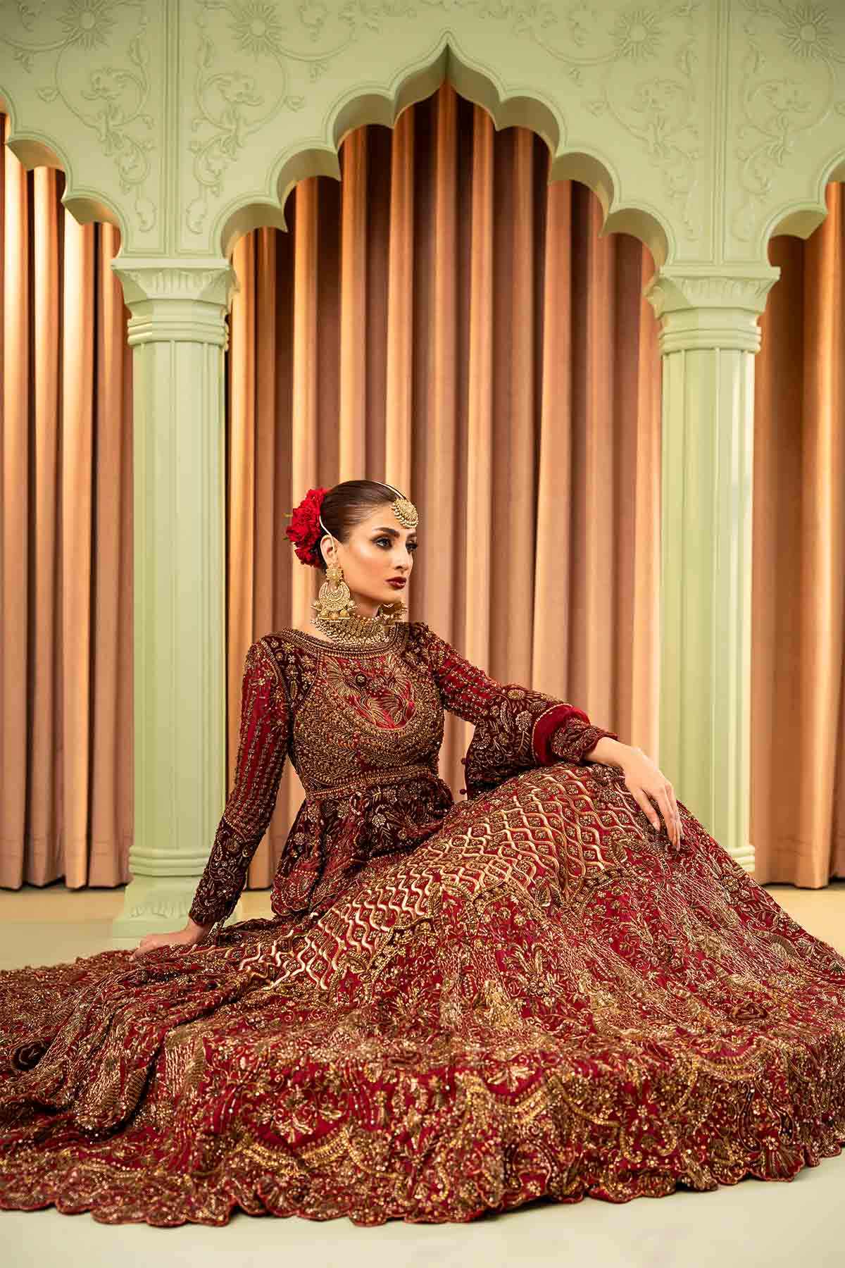 Exude Grandeur In This Deep Maroon And Royal Maroon Hued Peplum And Lengha Cut From Pure Rawsilk And Velvet, Featuring Floral And Peacock Motifs To Give It A Regal Look. Detailed Zardoze Work In A Dull Gold And Gold Composition. An Organza Net And Velvet Dupatta With Diagonal Lines, Scattered Motifs, Crystals, Stones Spray And Zardoze Worked Borders. The Composition Of The Embroidery Is Inspired By Mughal Gardens And Geometric Patterns Containing Motifs Like, Mughal Figures And Peacock. Peacock Is The Focal Point Of This Whole Composition It Pops Up Through Out The Design.