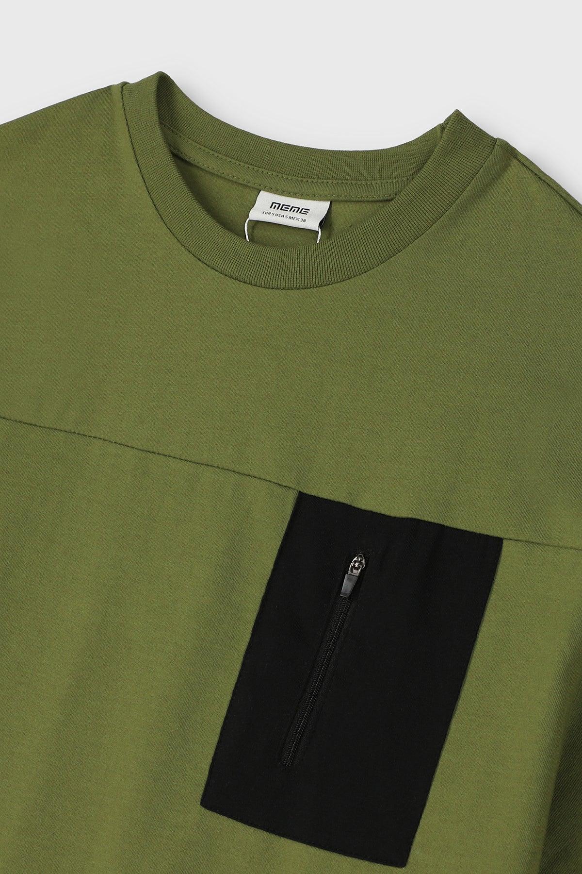 Round Neck T-Shirt With Short Sleeves And Front Zippered Pocket