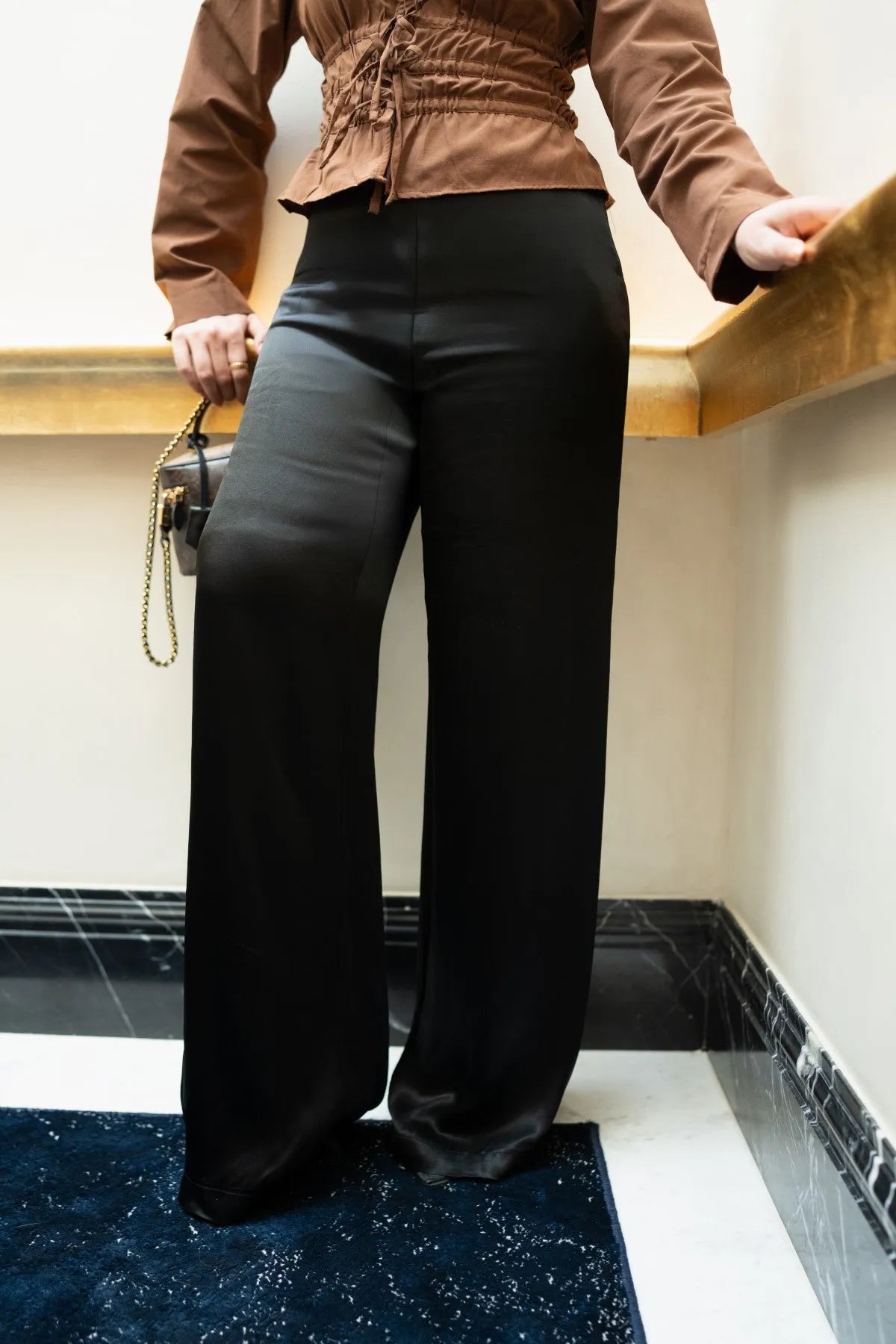 Fall Satin Wide Leg Trousers a luxurious staple in sleek black. Crafted from smooth satin, these wide-leg trousers exude timelessness and versatility.