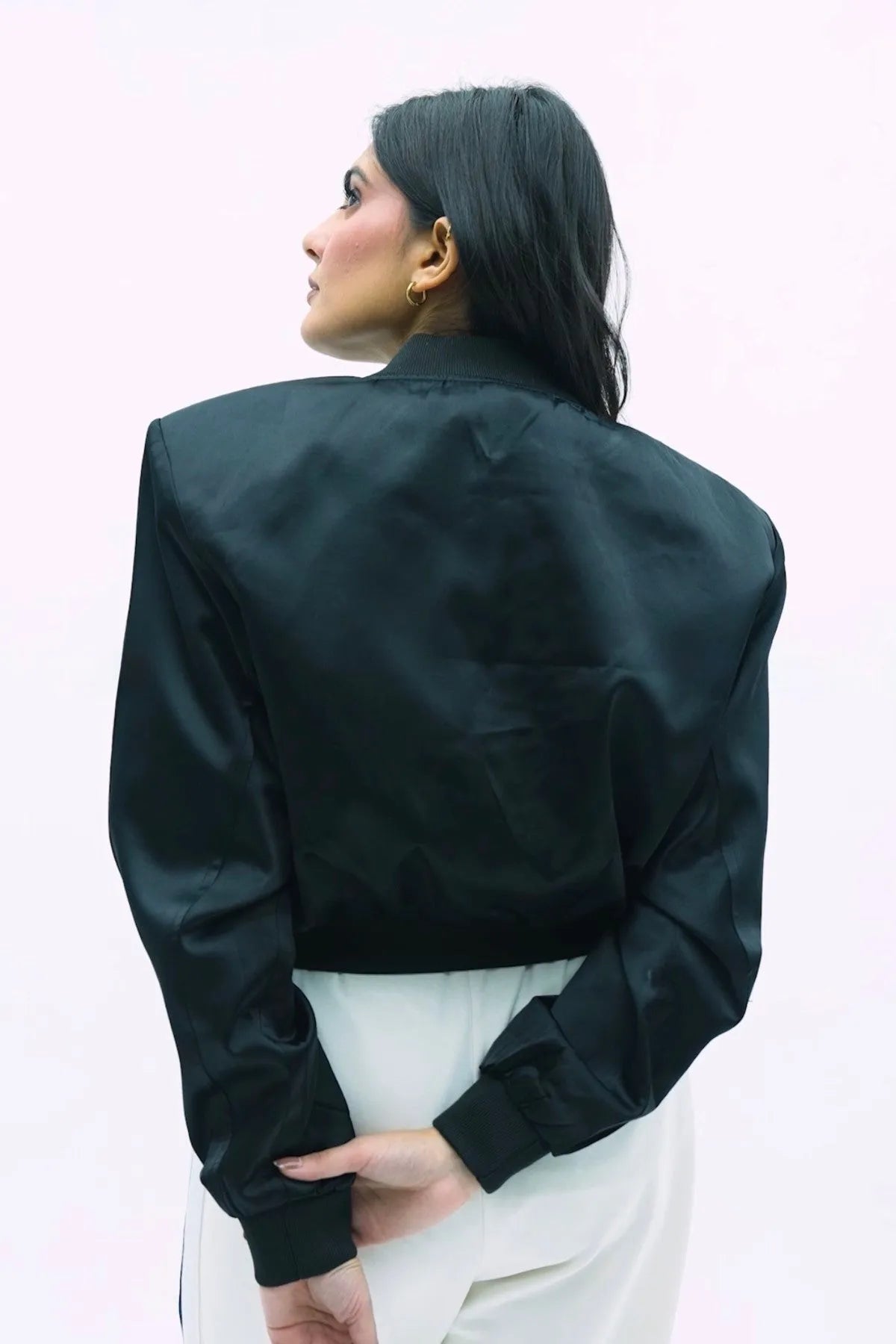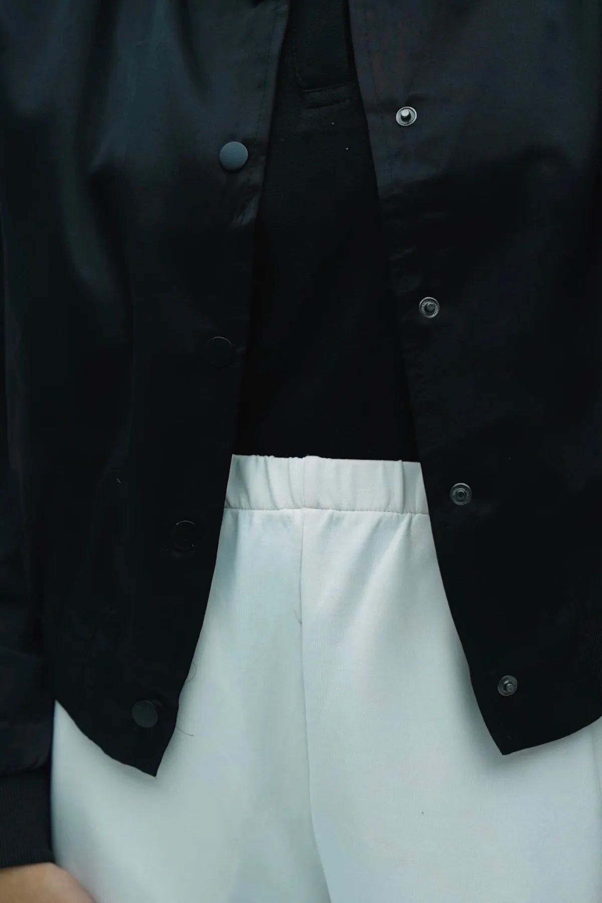 A sporty-chic essential for your wardrobe. Robbie classic black, this jacket features ribbed details on the sleeves and hem, adding texture and style. The front is adorned with snap buttons, enhancing its athletic appeal. With a perfect blend of comfort and trendsetting design, this jacket is an ideal choice for a casual yet fashionable look.