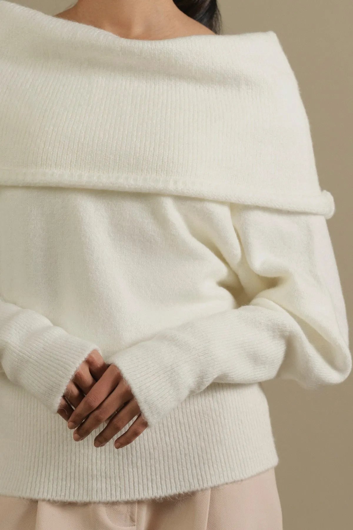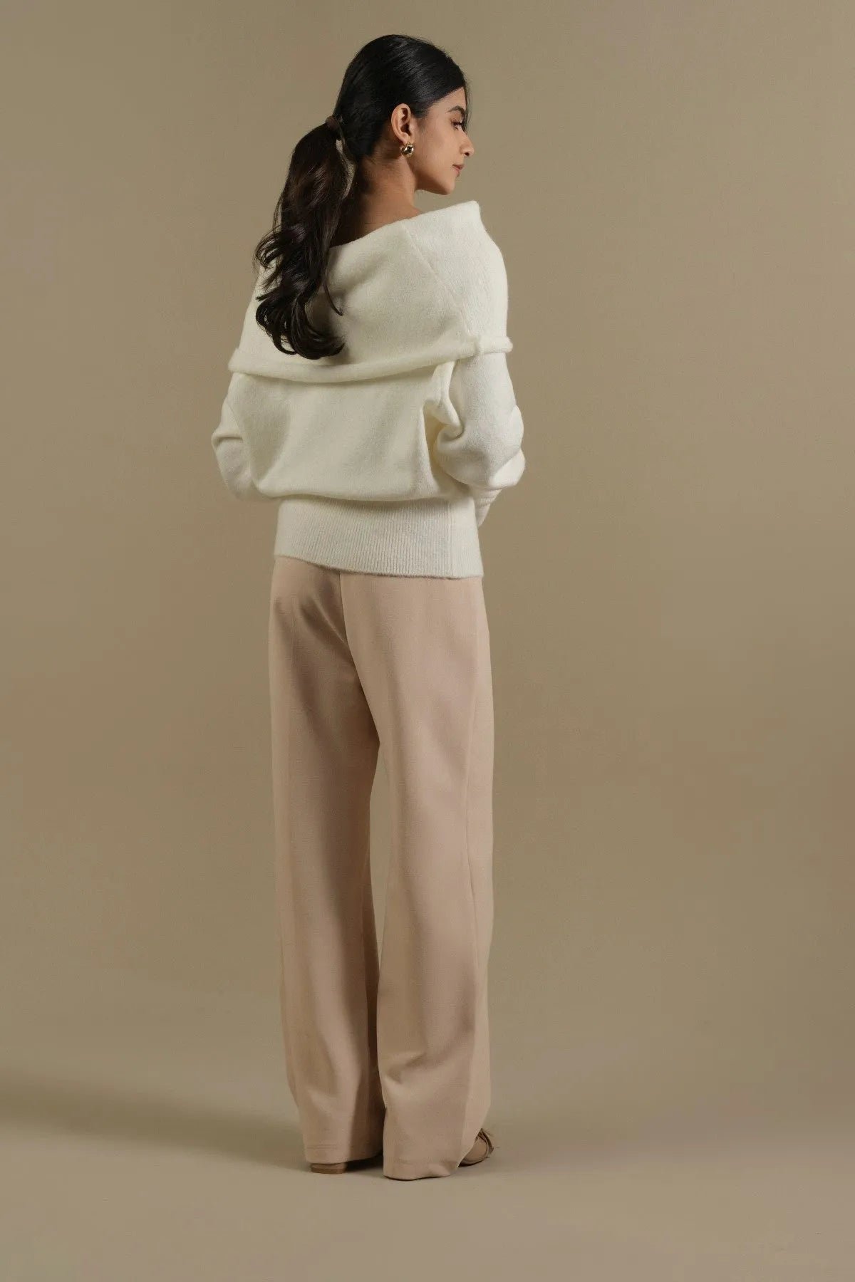 Engineered for shape and movement, this sweater is crafted from a soft acrylic blend strengthened with polyester and finished with spandex for stretch. The knit adapts to the body, creating a smooth, sculpted fit that moves comfortably with you. A folded neckline adds depth and structure, giving the piece a modern, sculptural feel. Flexible, refined, and intentionally shaped, it’s a statement knit designed for confident everyday wear.