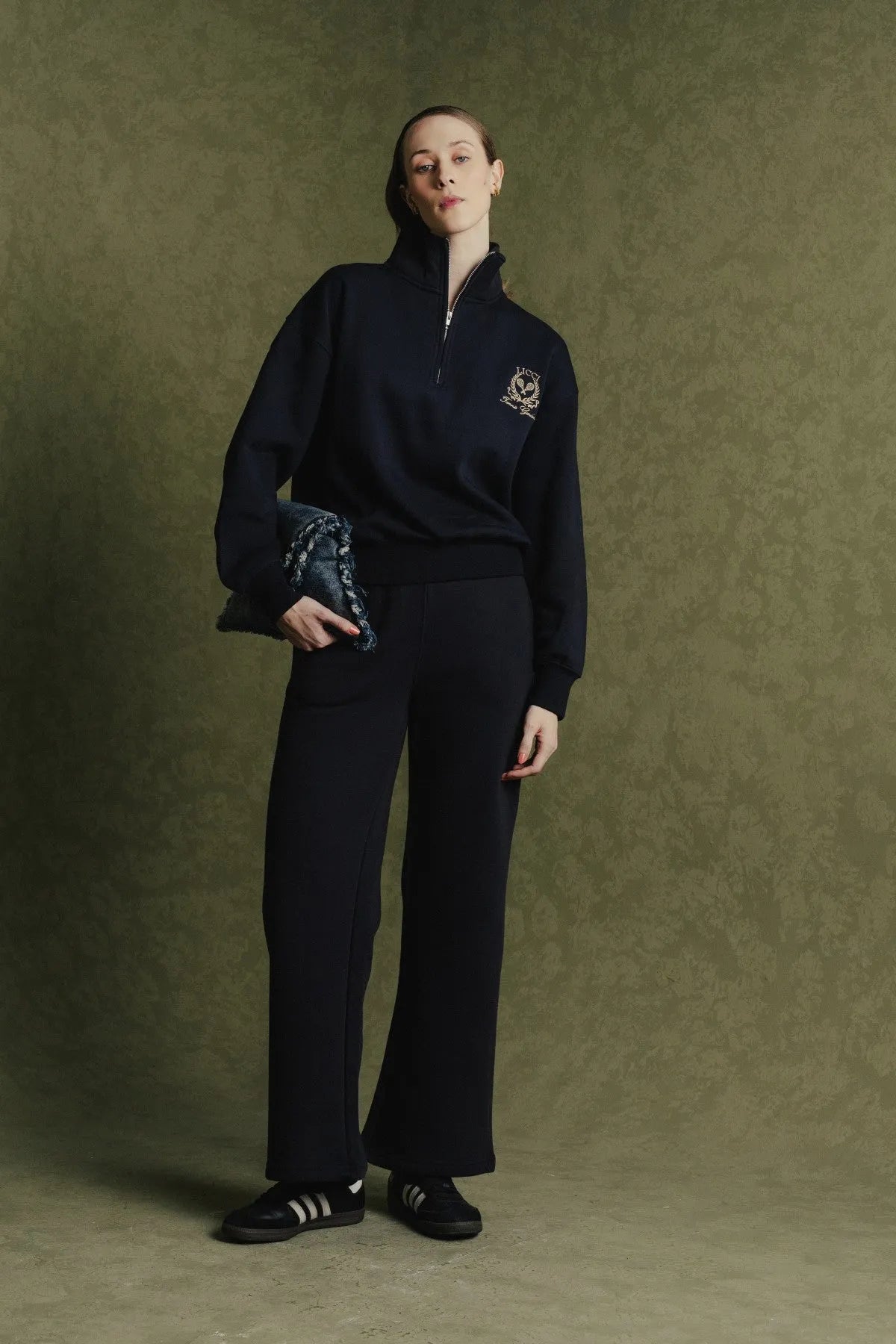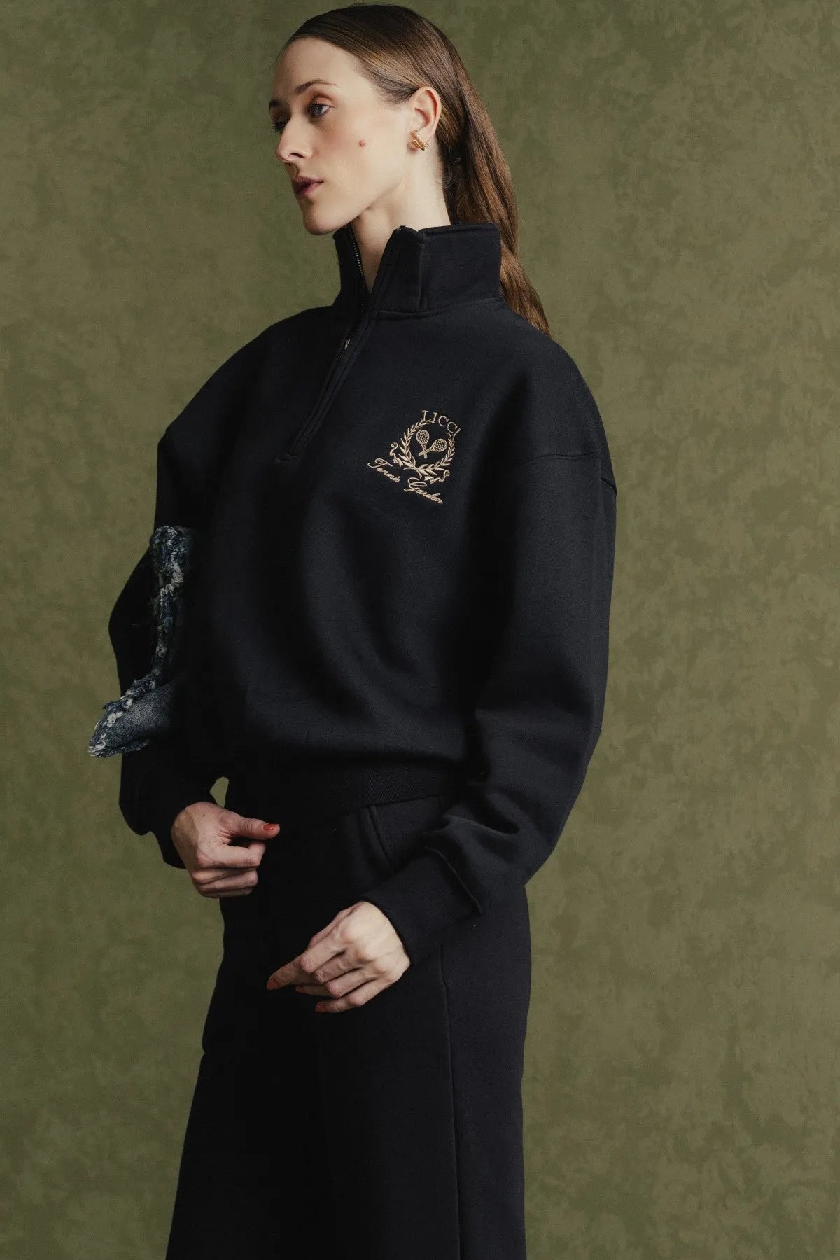 The Black Zip-Up Mockneck Sweatshirt is a relaxed fit essential crafted from a Premium Fleece Supima cotton.