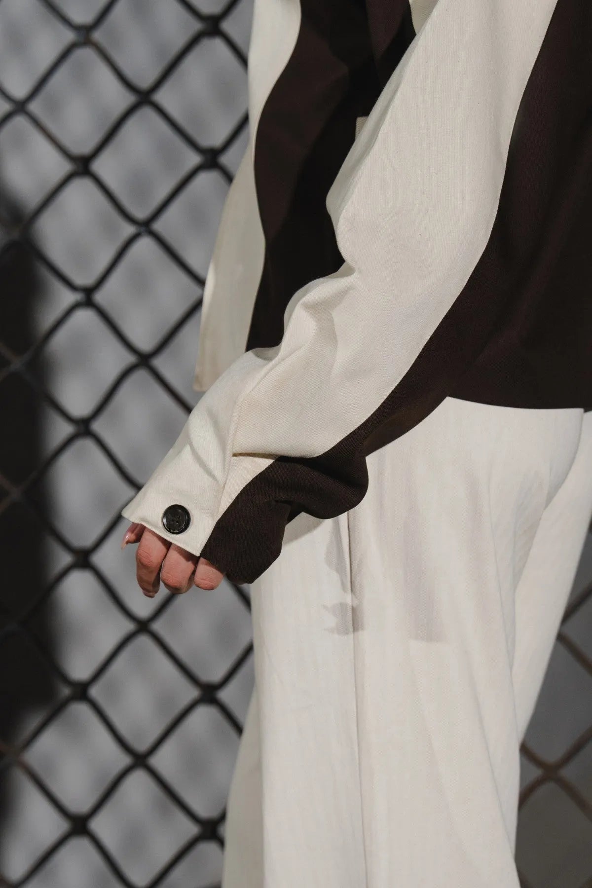 • Straight sleeves with pleated cuffs and button