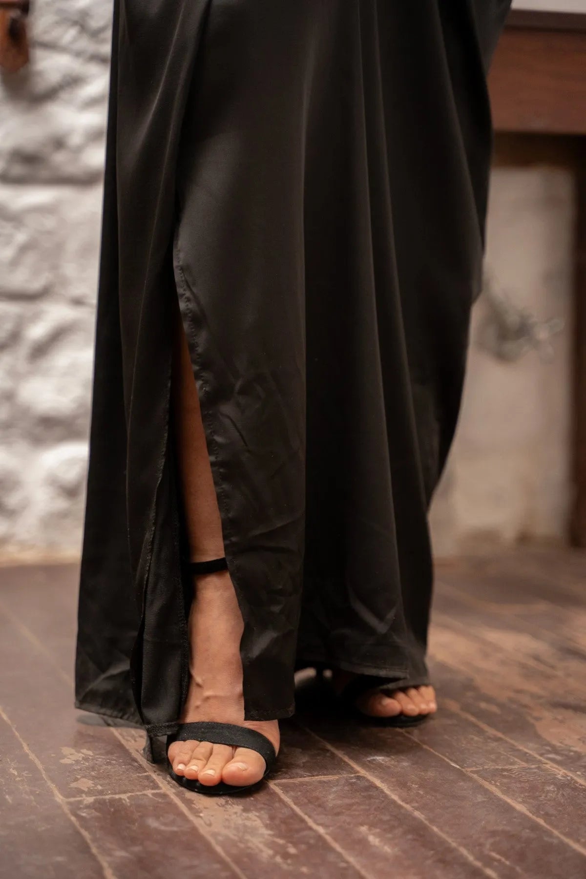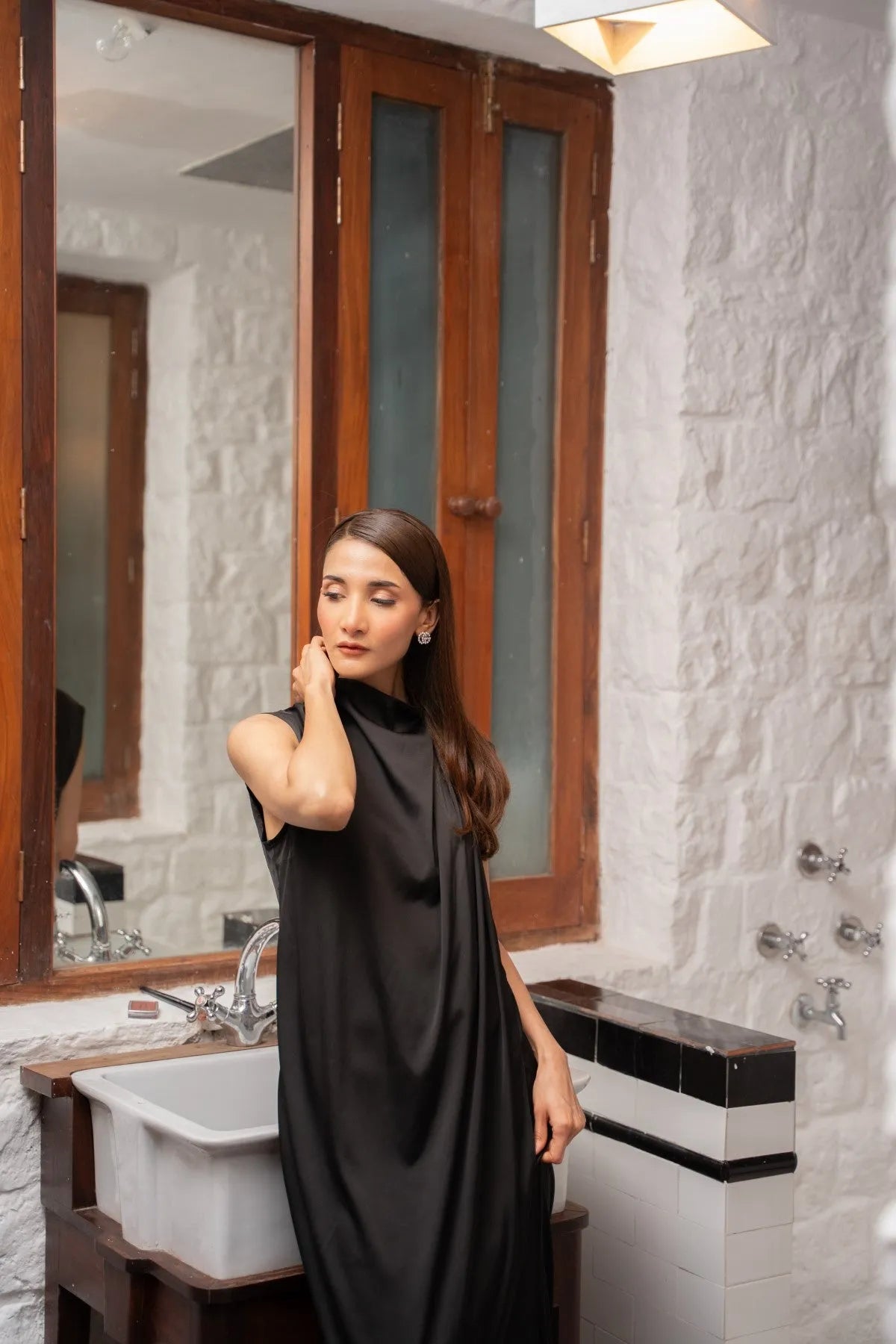 Fluid and refined, the Misty Cowl Neck Dress black draped dress is the kind of piece that slips on and instantly elevates your look. Made from a soft, stretchy blend, it features a gentle cowl neckline and a sleeveless cut that frames the shoulders just right. The relaxed fit and flowing shape create easy movement, giving it a graceful feel without any stiffness. Smooth, lightweight, and quietly striking, it’s made for warm evenings, last-minute plans, and everything in between.