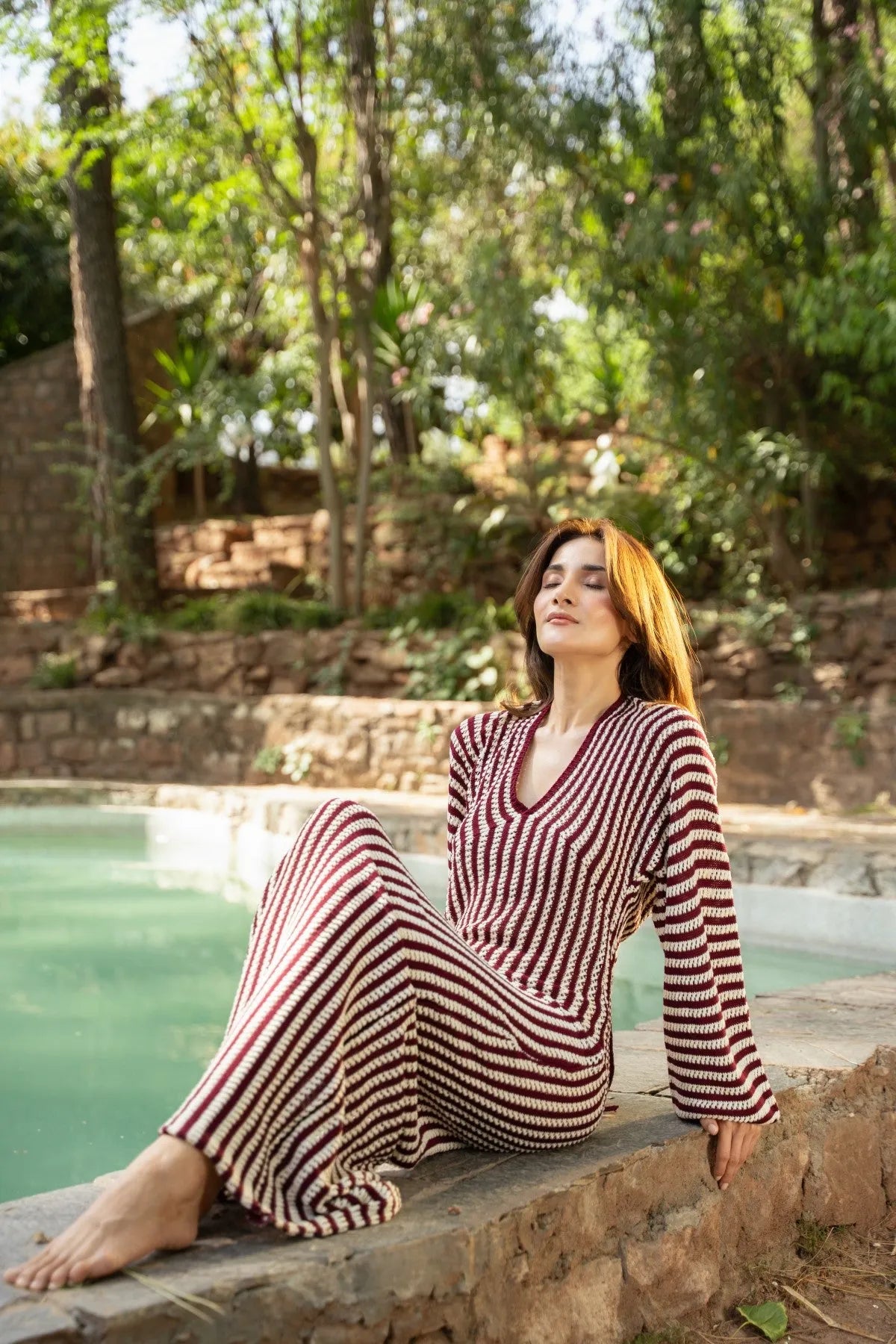 Tress Striped Dress Cut from a luxe cotton blend, this black and white striped dress drapes softly while keeping its shape, offering a graceful balance of structure and flow. The V-neckline frames the collarbone beautifully, while long puffed sleeves add a feminine flourish. With its timeless stripes and charming details, this piece is perfect for slow mornings, sweet escapes or anywhere you want to feel quietly elegant.