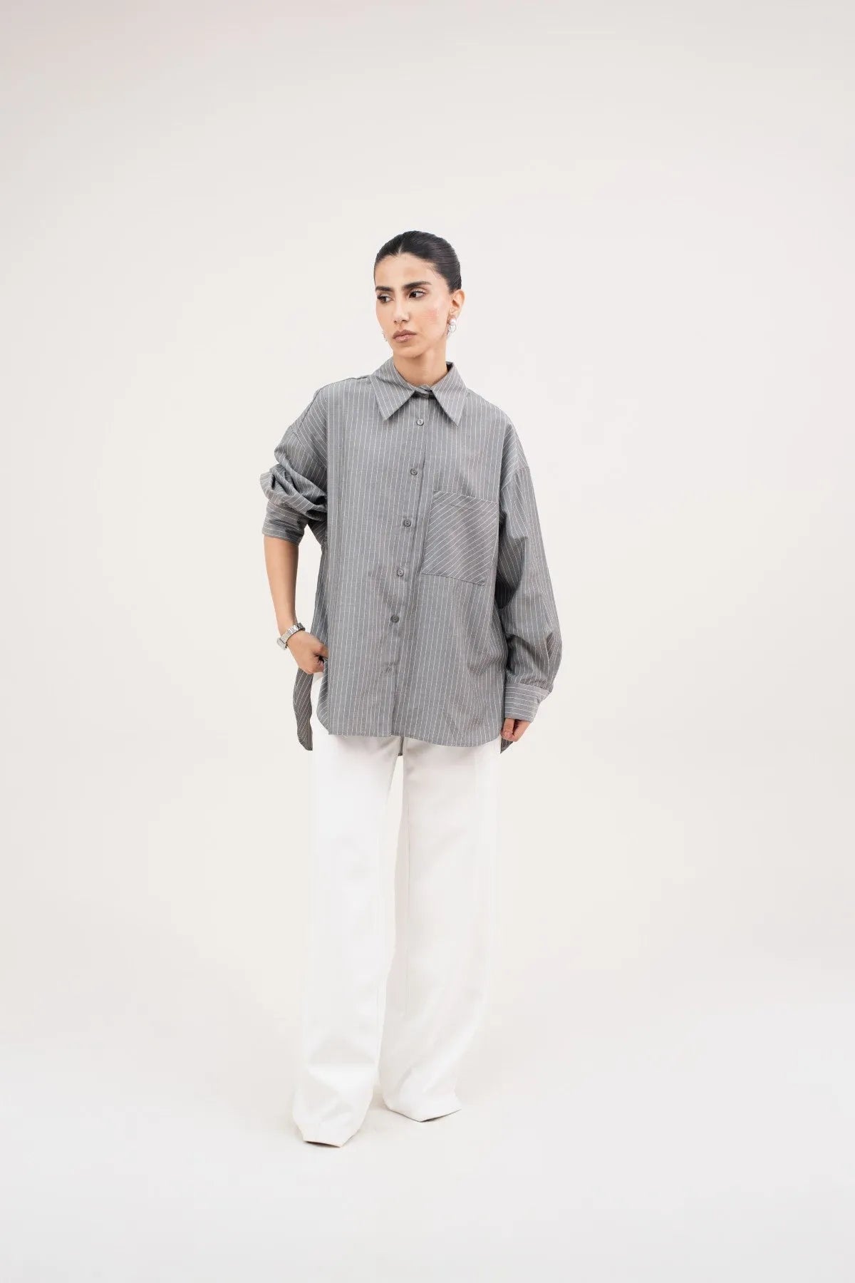 With subtle stripes and a sharp collar, this shirt screams sophistication. Pair it with trousers or jeans for a winning look.