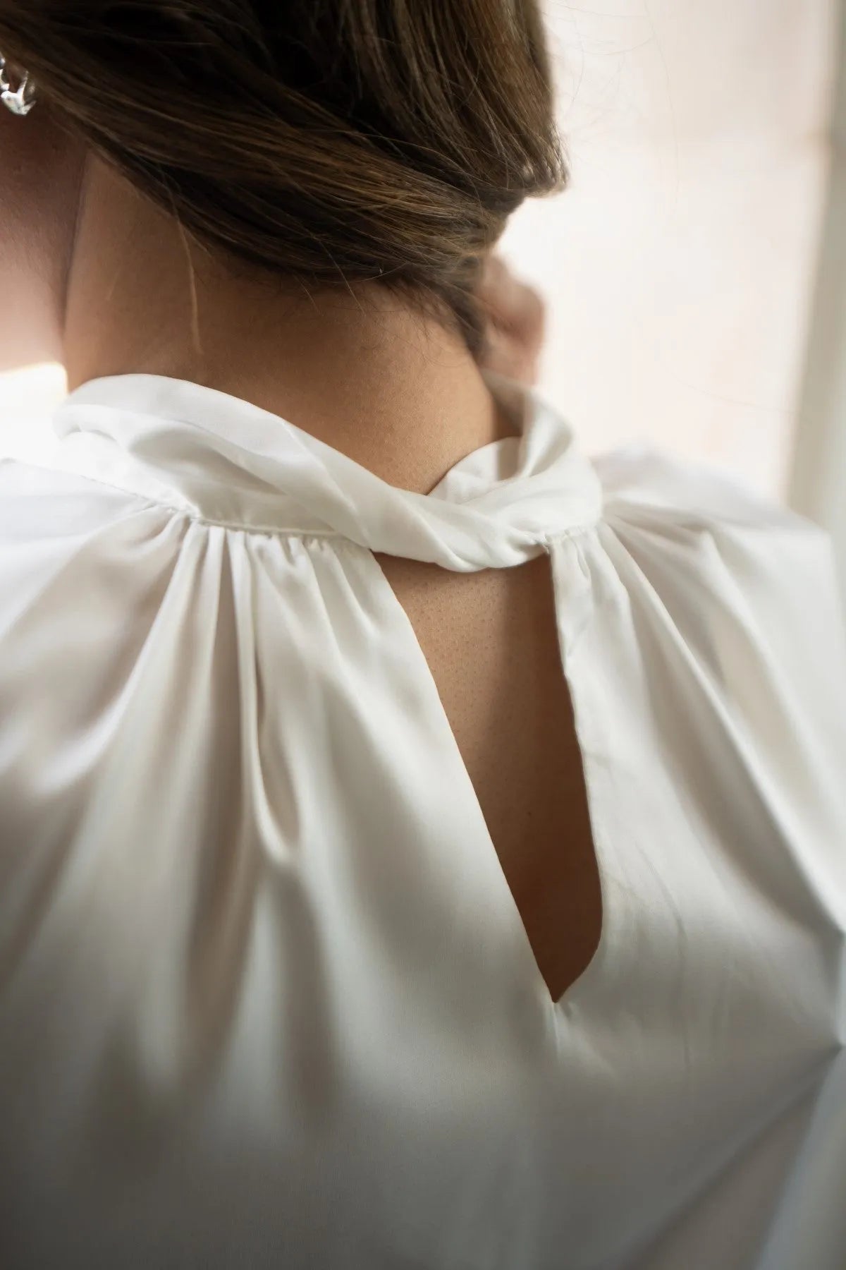 Chloris Sleeveless Tie Up Detail Top this sleeveless mock-neck design features elegant tie-up detailing in the back, adding a sophisticated touch to any outfit. Perfect for both office wear and evening outings.