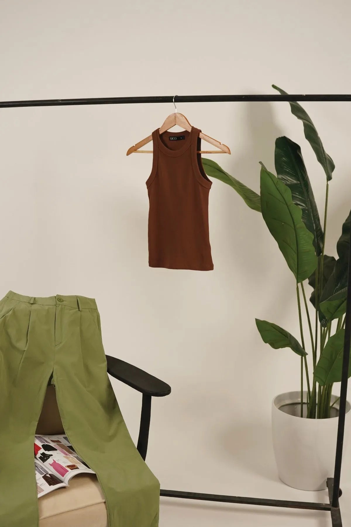 Crafted from soft rib knit fabric, this sleeveless top offers a snug and flattering fit. Versatile and comfortable, it's perfect for layering or wearing on its own.