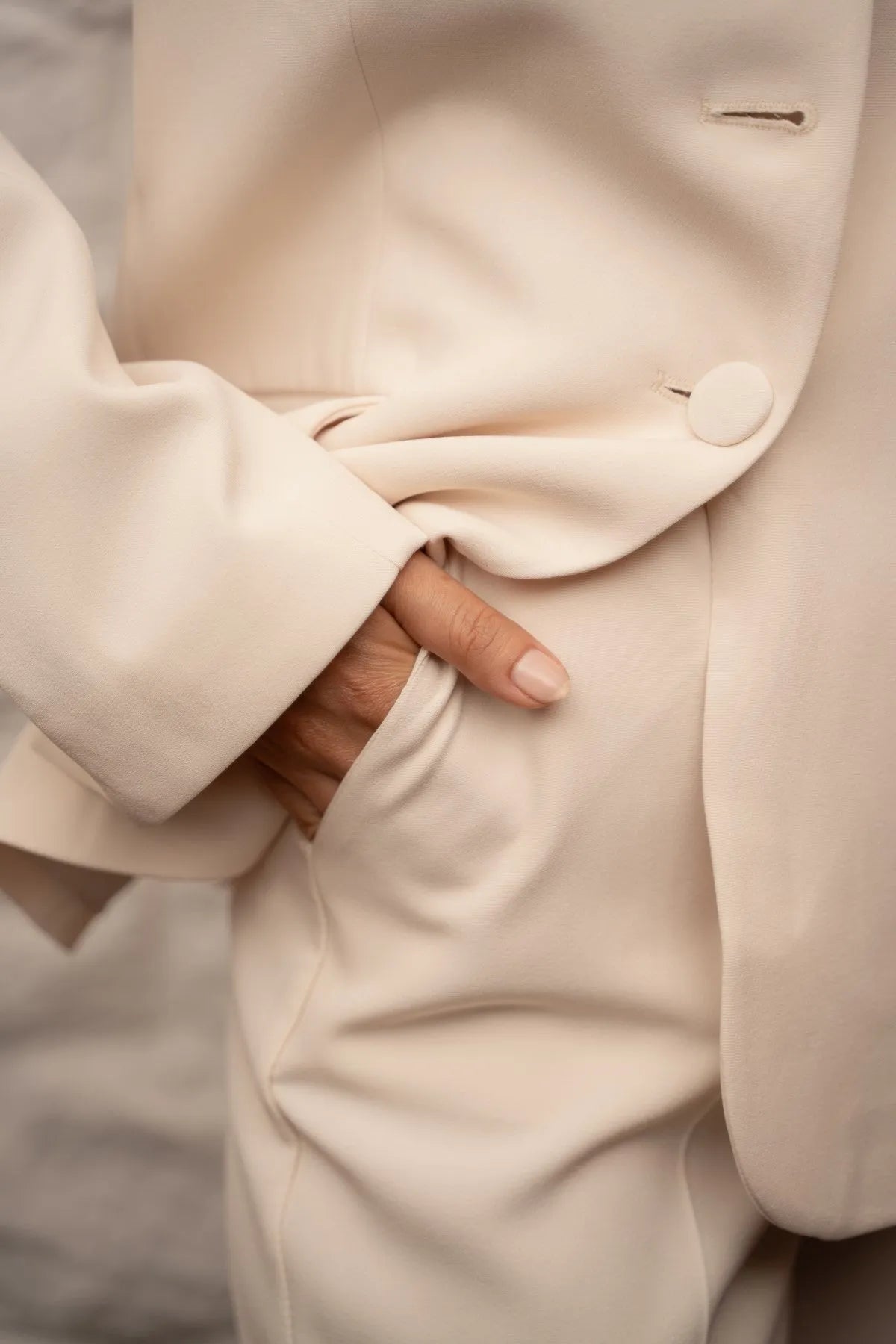 Polished without being too formal, our beige Coco Pants set brings a fresh spin to everyday dressing. These straight-leg pants feature a flat waistband and easy side seam pockets, giving a smooth, unfussy, and quietly refined finish. Cut from a soft stretch blend, it moves with you while keeping its shape from day to night.
