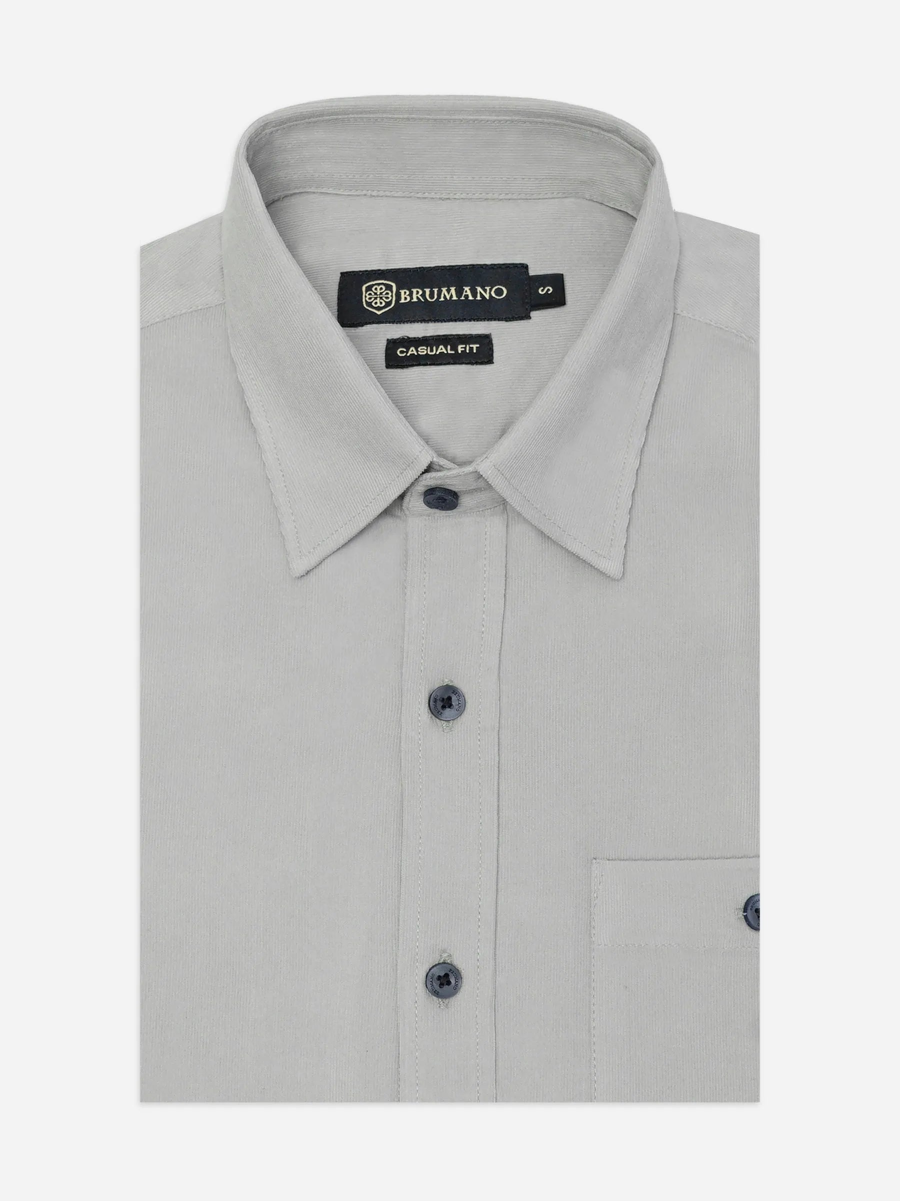 Elevate your casual style with this light grey corduroy shirt. Designed in a rich textured corduroy fabric, it offers a soft feel with a structured look. Finished with casual collar, long sleeves & font pocket while the corduroy finish adds a timeless, vintage-inspired touch. Perfect for layering in cooler weather