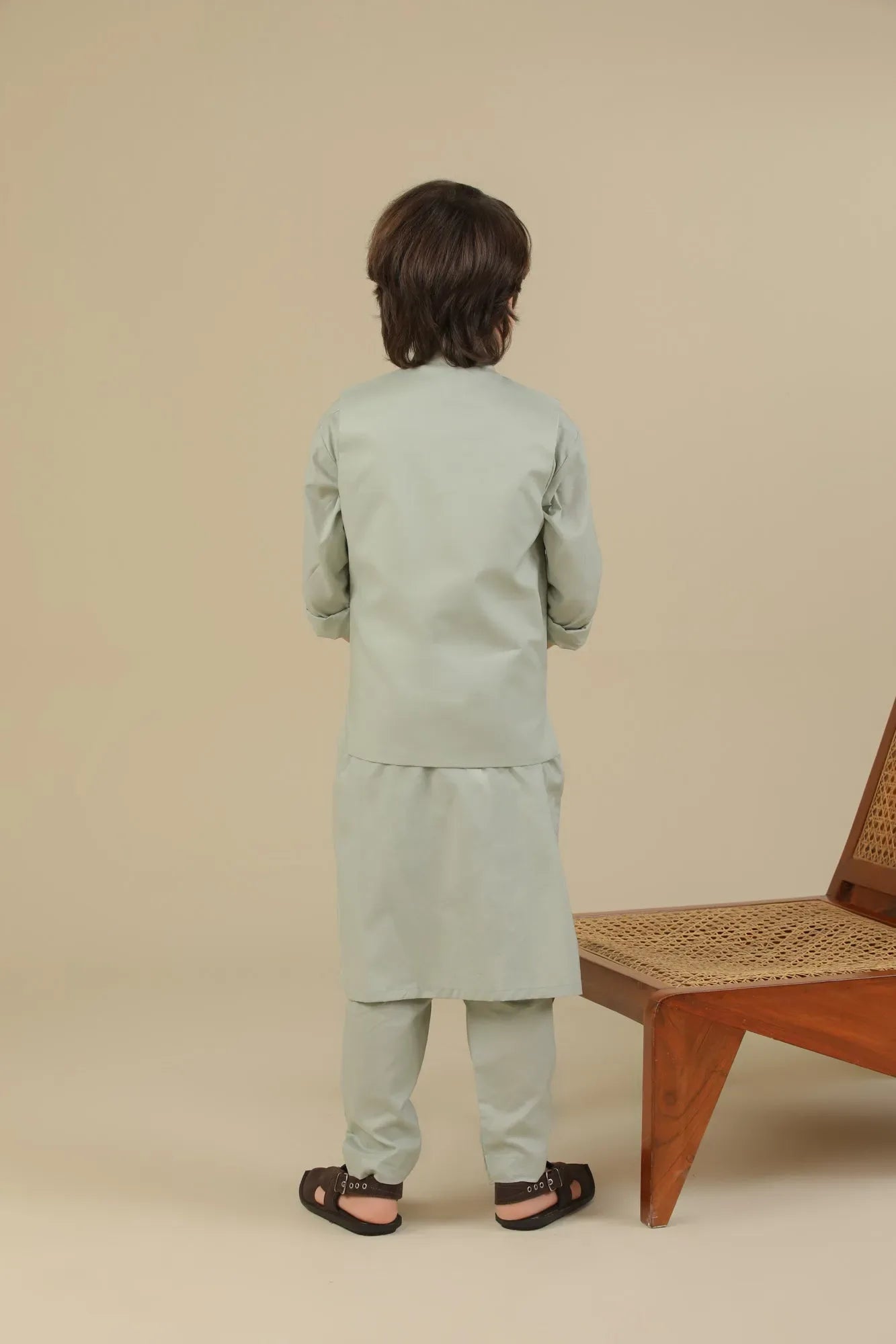 Light Mint Soft Cotton Kurta Trouser with Waistcoat - Kids