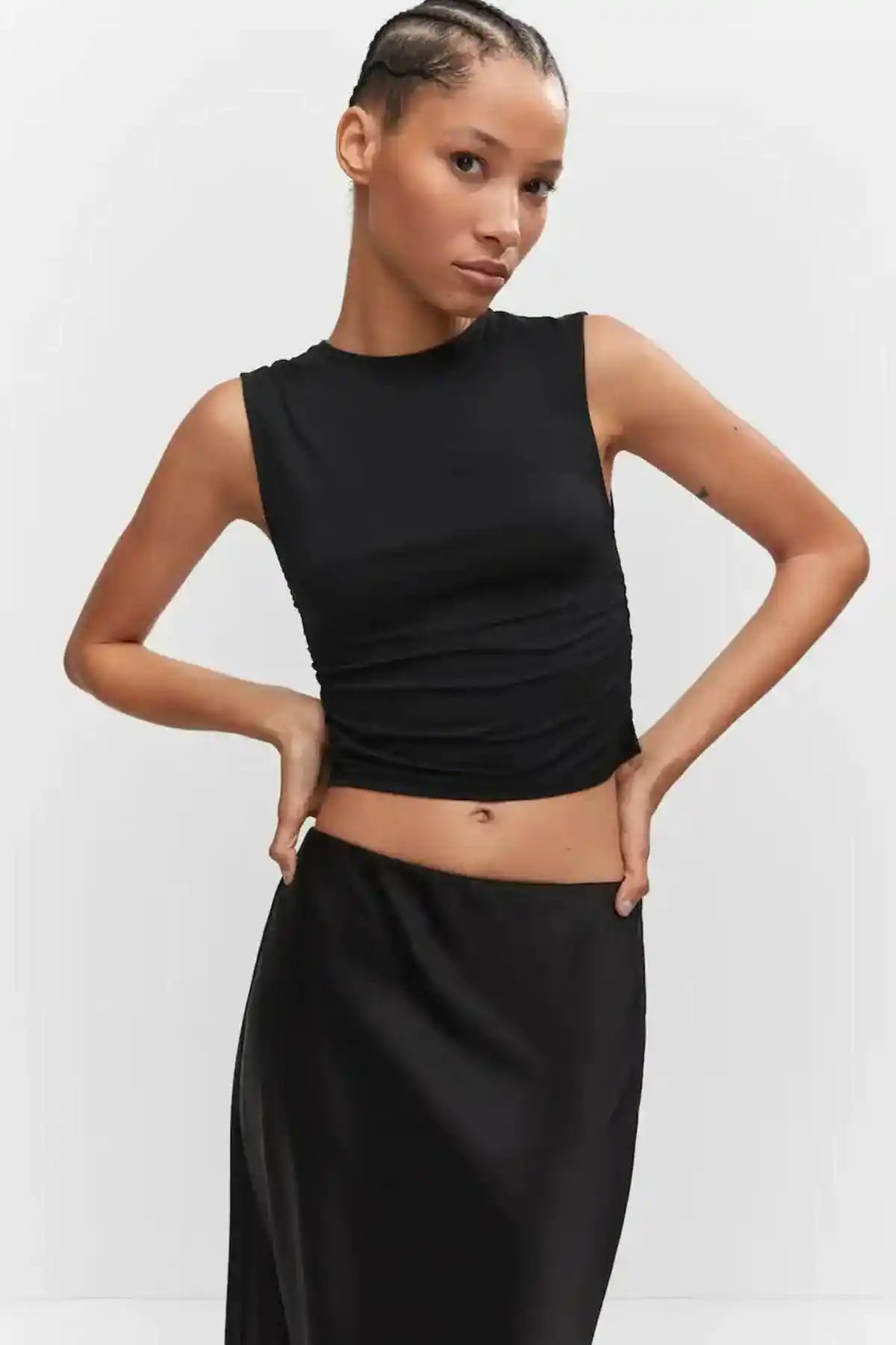 Flowy Fabric. Tailored Dress. Gathered Details. Rounded Neck. Wide Straps. Unclosed. Festival Season.