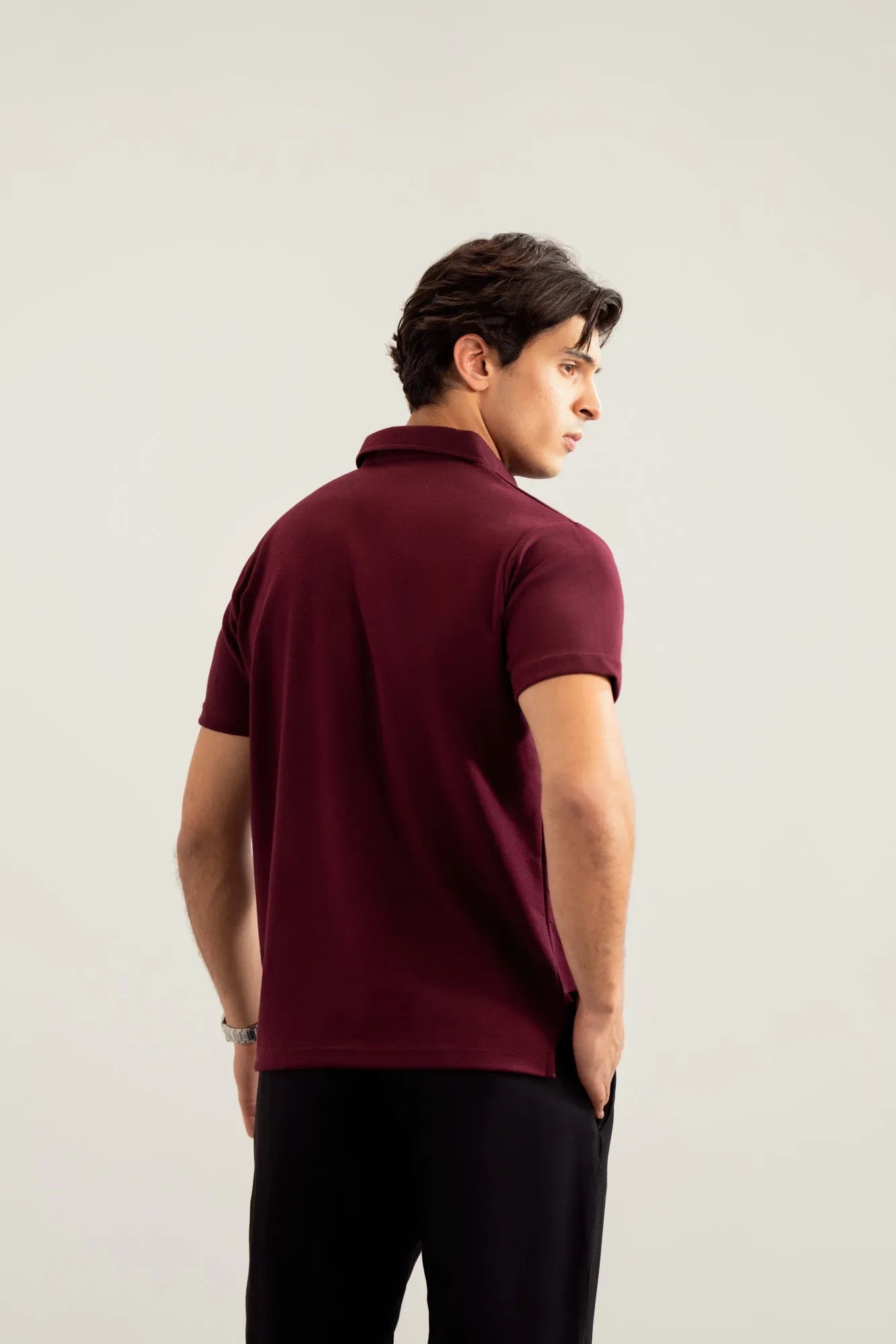 Maroon Interlock Johnny Collar Polo - Smart Fit - Men