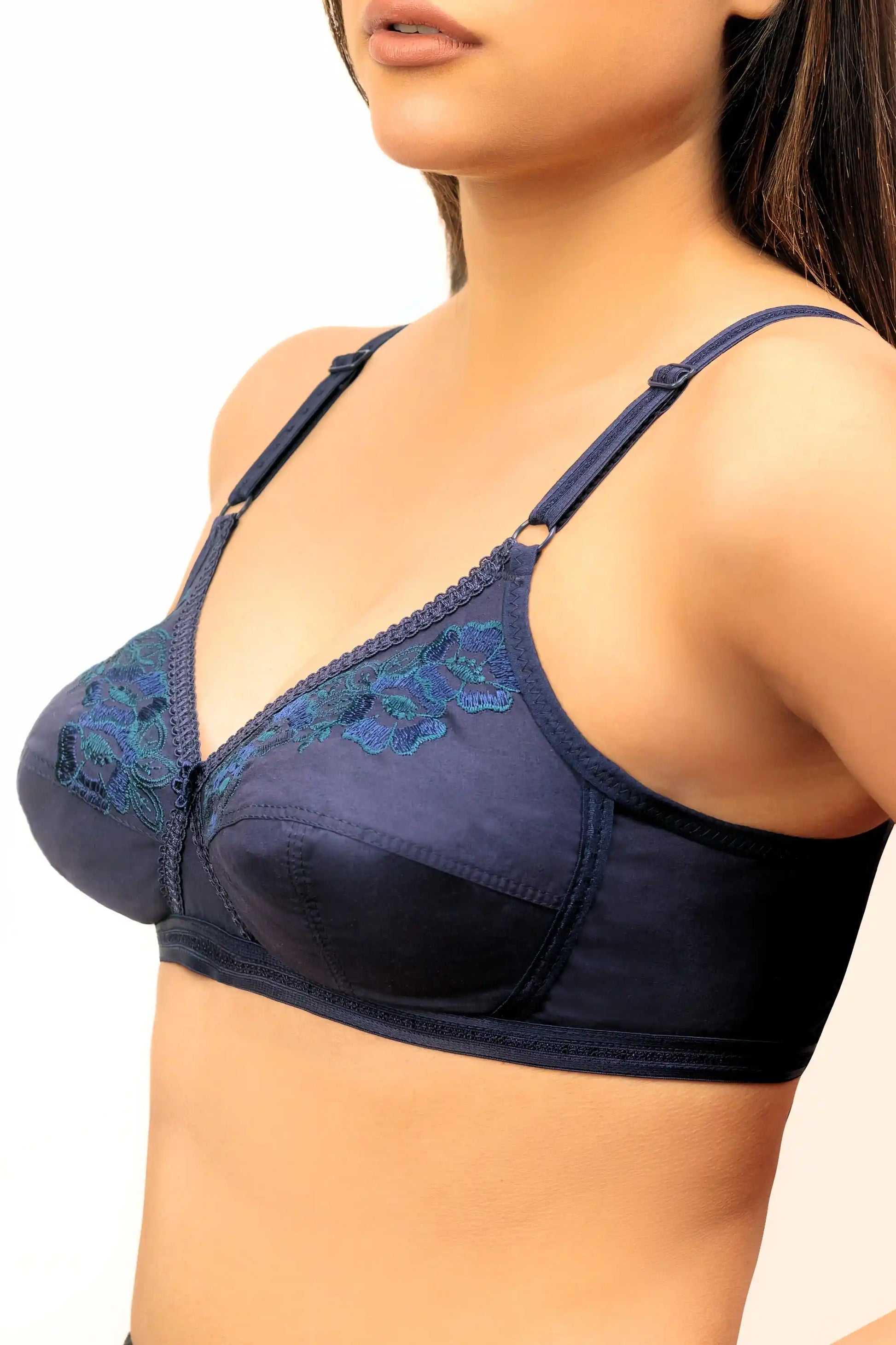 Maxclence Cotton Embroidered Unpadded Crossover Bra Navy Blue