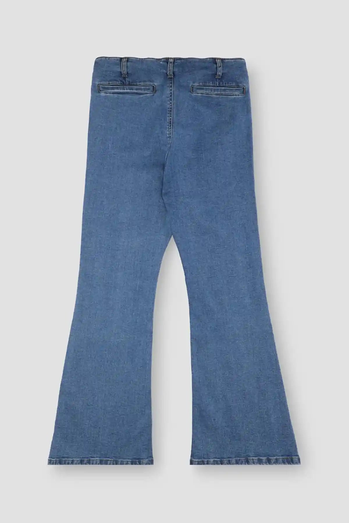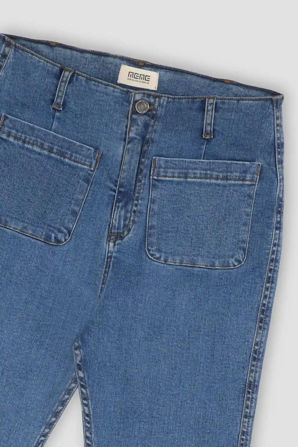 98% Cotton &Amp; 2% Elastane. Bold And Classical Medium Wash Wide Leg Denim Jeans With Regular Waistband Featuring Button And Loops. Front Patch Pockets. Rear Welt Pockets. Contrast Seam Details. Wide Hem