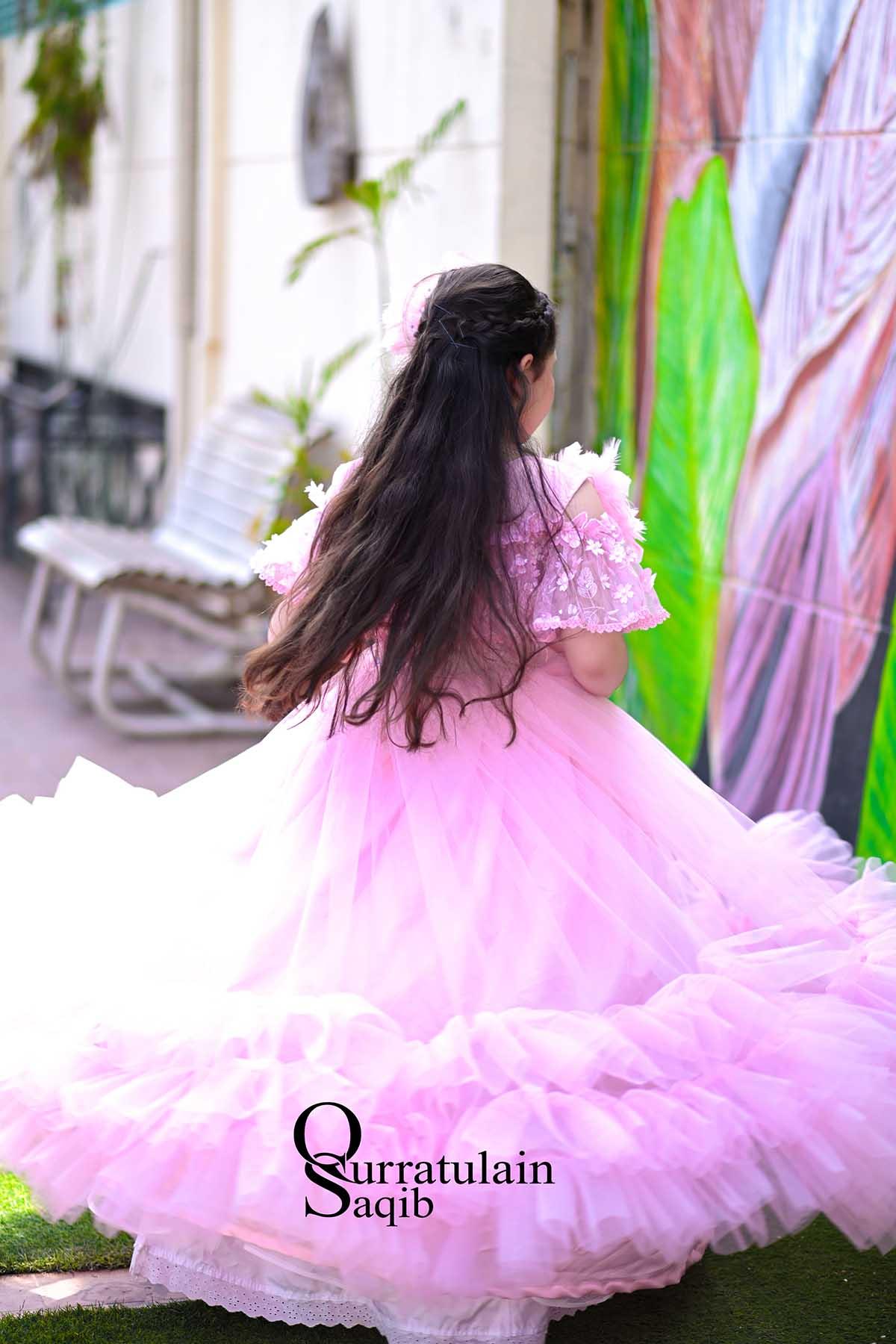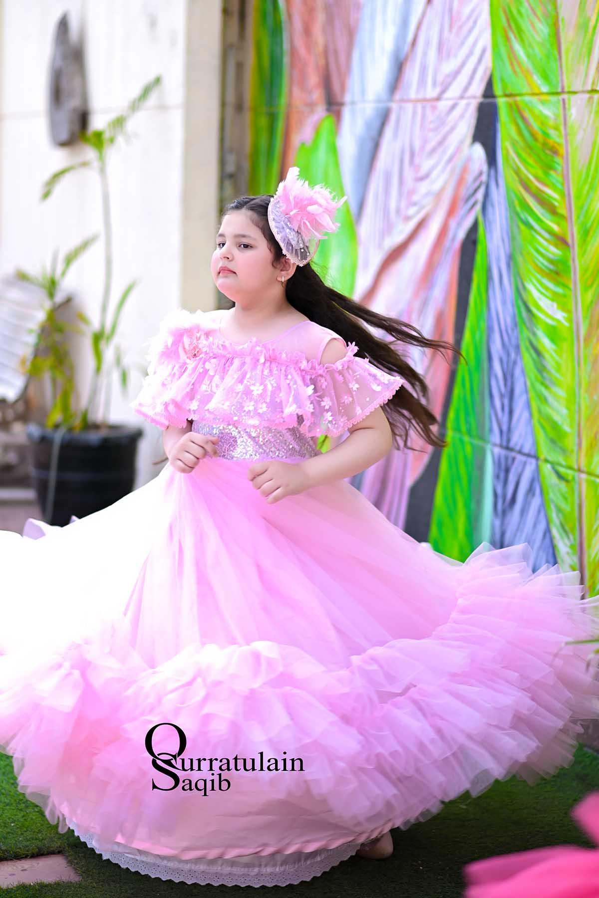 Introducing the Mehar-i-Mah Pink frock, a splendid creation that radiates elegance and charm. Dressed in a captivating blend of blue and green, the frock's base is expertly fashioned from breezy net, imparting a light and ethereal quality. The body of the dress is gracefully crafted with matching breeze net, creating a harmonious and seamless look. Adding an extra layer of sophistication is the accompanying cape, made from intricately embroidered net and embellished with delightful bottom ruffles.