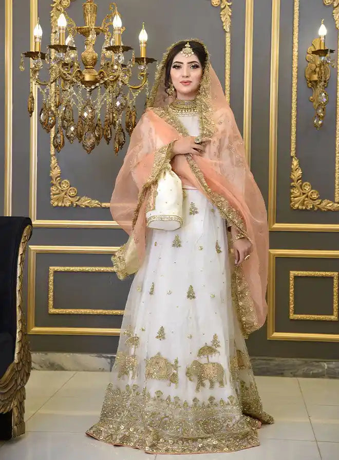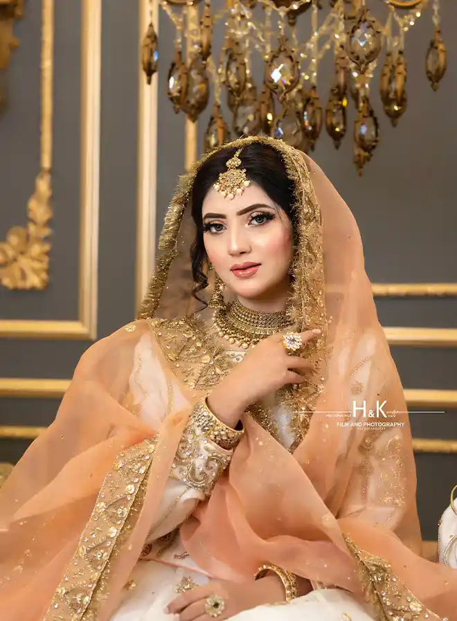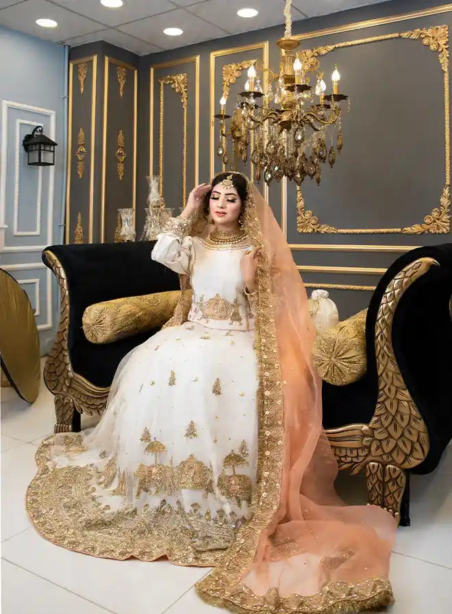 The dupatta is customizable, allowing brides to choose any color to perfectly match their style and preference. This versatility, combined with the meticulous craftsmanship, makes the "Mehr Bano" outfit a perfect choice for brides looking to make a memorable statement on their special day.