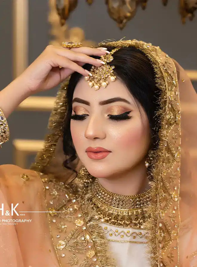 The "Mehr Bano" bridal outfit is a stunning handworked ensemble that includes a beautifully designed shirt, an elegant lehnga, a flowing dupatta, and a stylish pouch/potli. This exquisite outfit features intricate details with exquisite dabka, qora, stone, gotta, and sequin embellishments, creating a captivating and opulent appearance.
