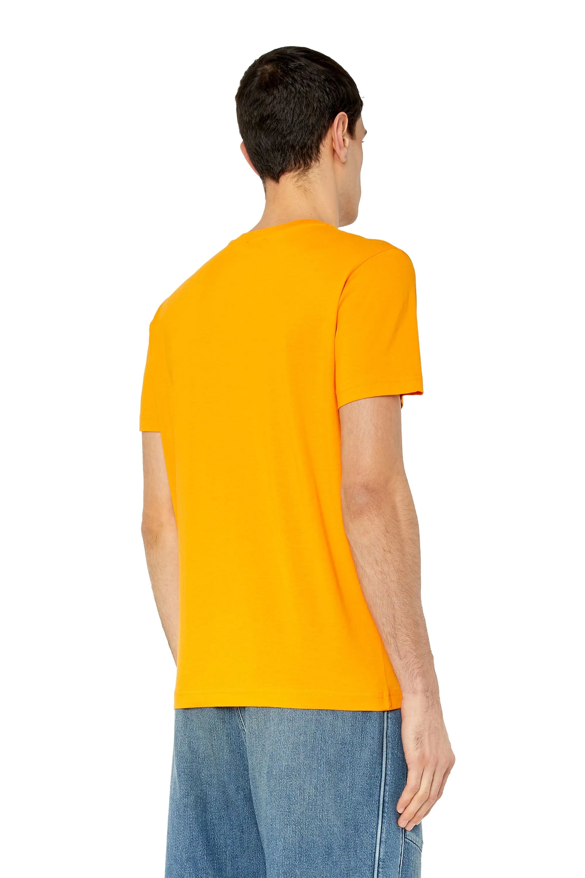 Men's slim-fitting T-shirt in organic cotton jersey. The front is printed with a sporty logo featuring Diesel lettering beneath the blown-up lowercase 'D' emblem.