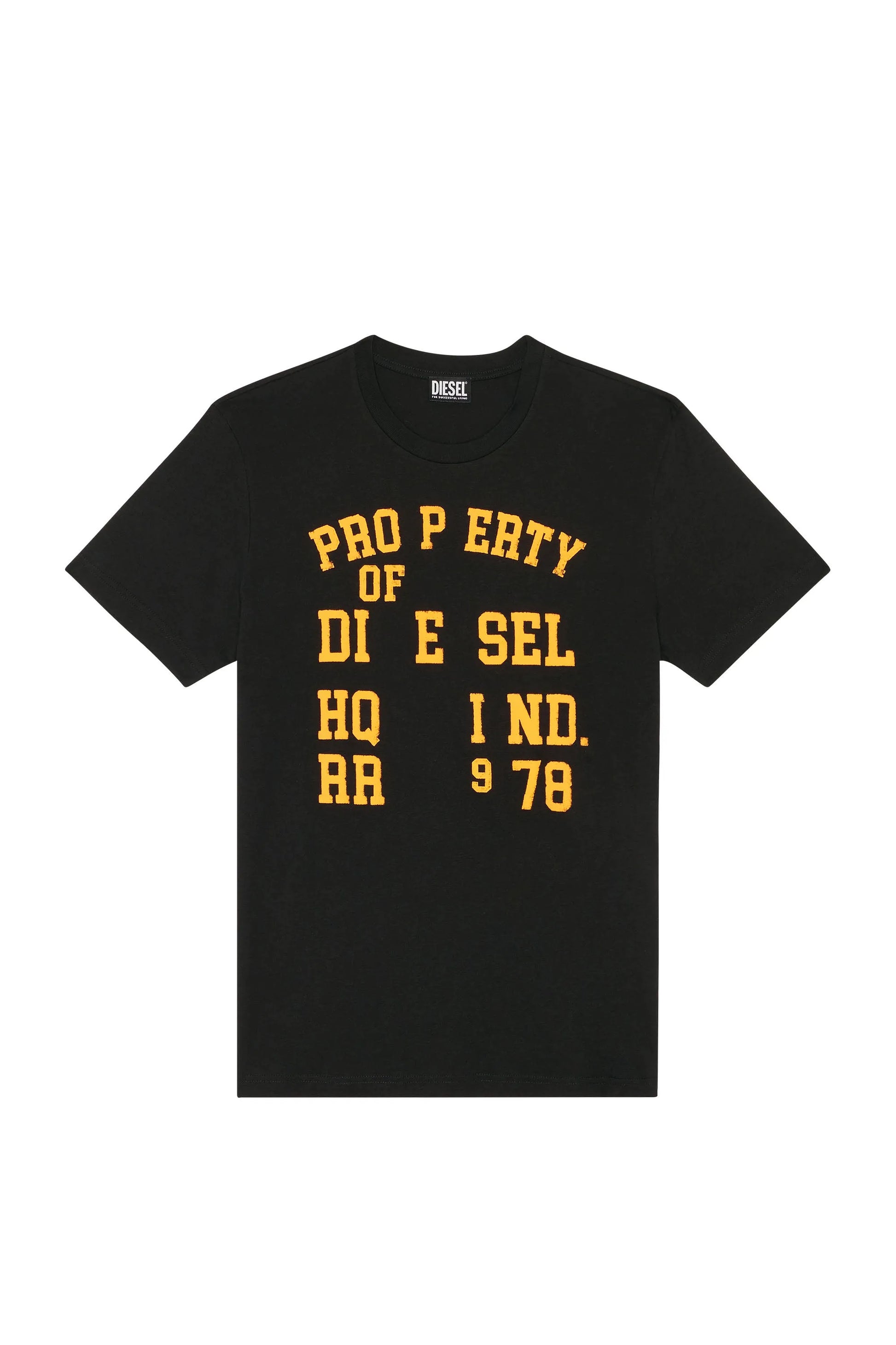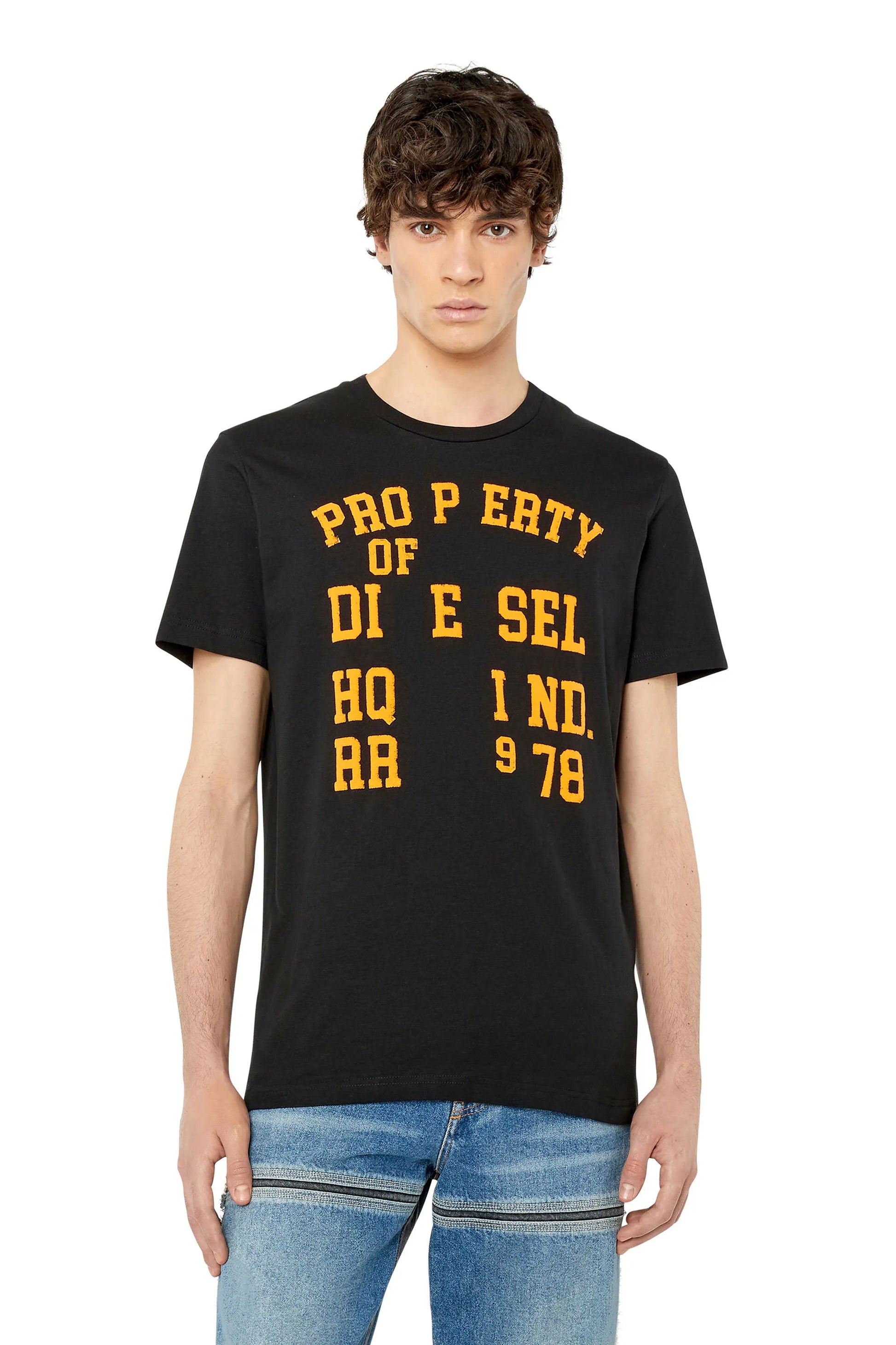 Men's jersey T-shirt made from organic cotton. Cut in a slim profile, it features puffy 'Property of Diesel' branding printed at the front.