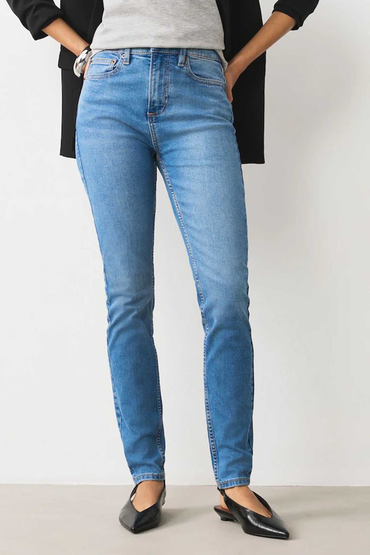 Mid Blue Denim Mid Rise Stretch Skinny Jeans