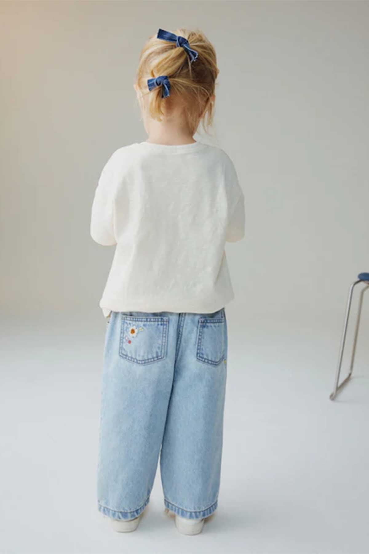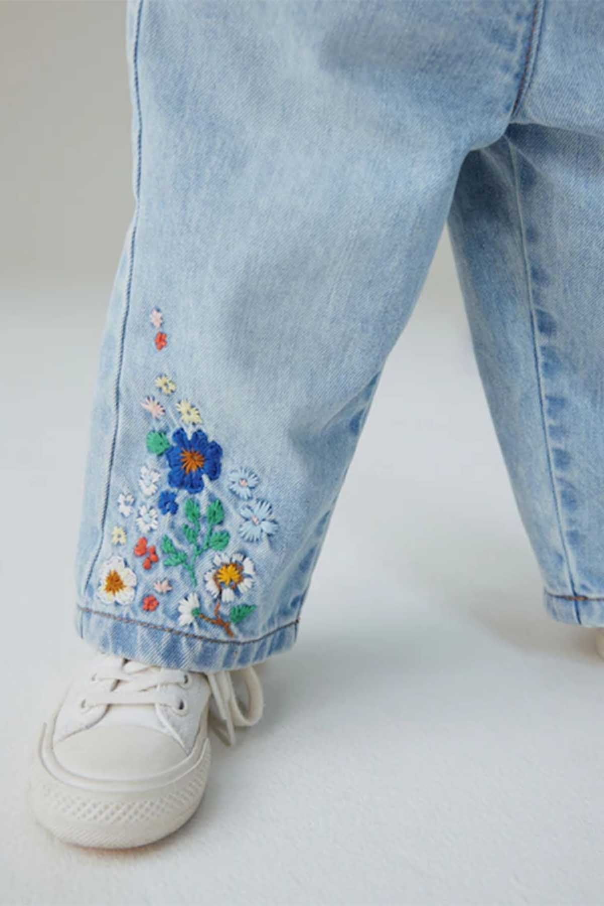 Mid Blue Floral Embroidered Jeans 3mths-7yrs