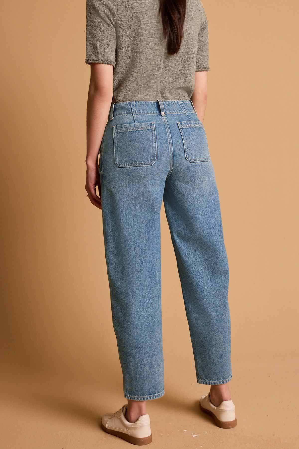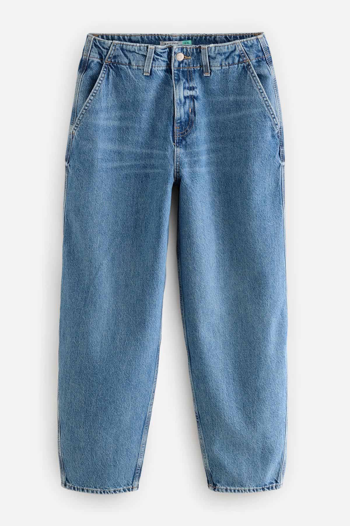 Mid Wash 100% Cotton Balloon Barrel Jeans