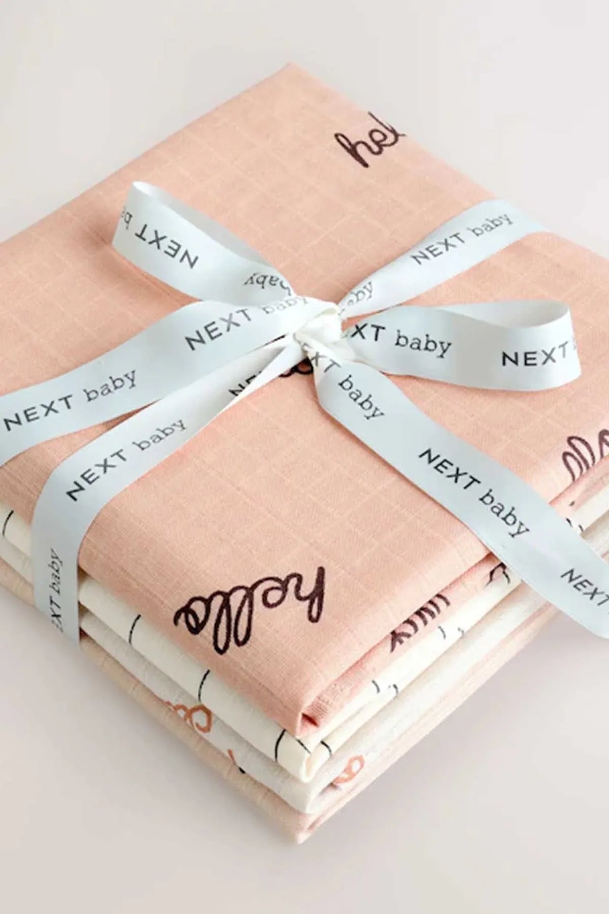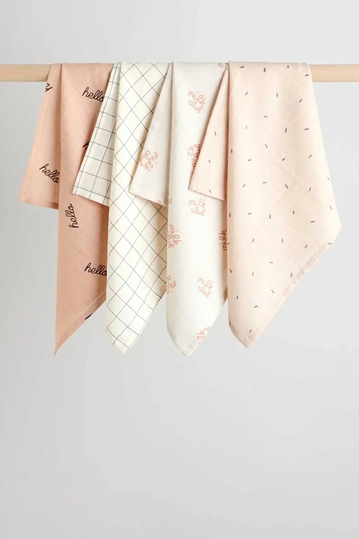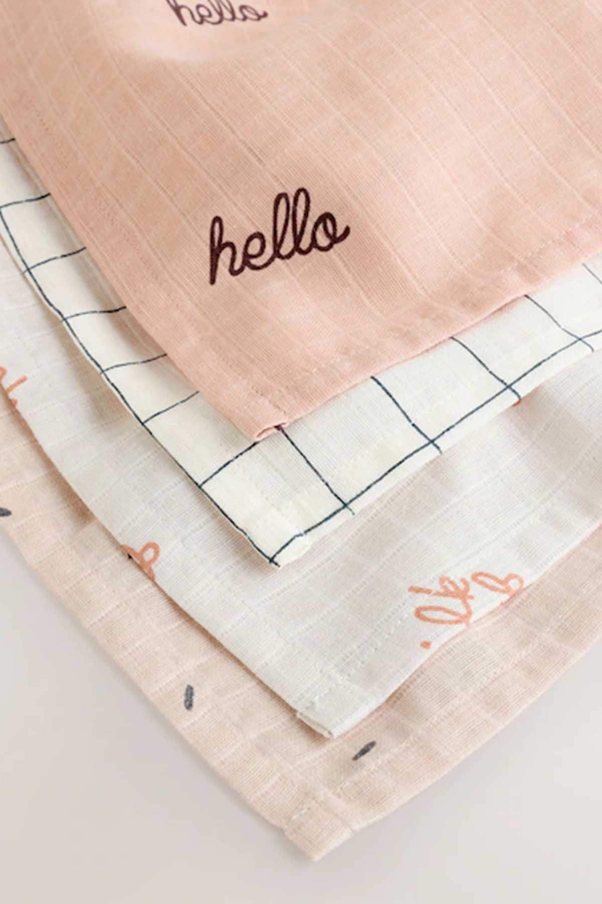Natural Hello World Baby Muslin Cloths 4 Pack