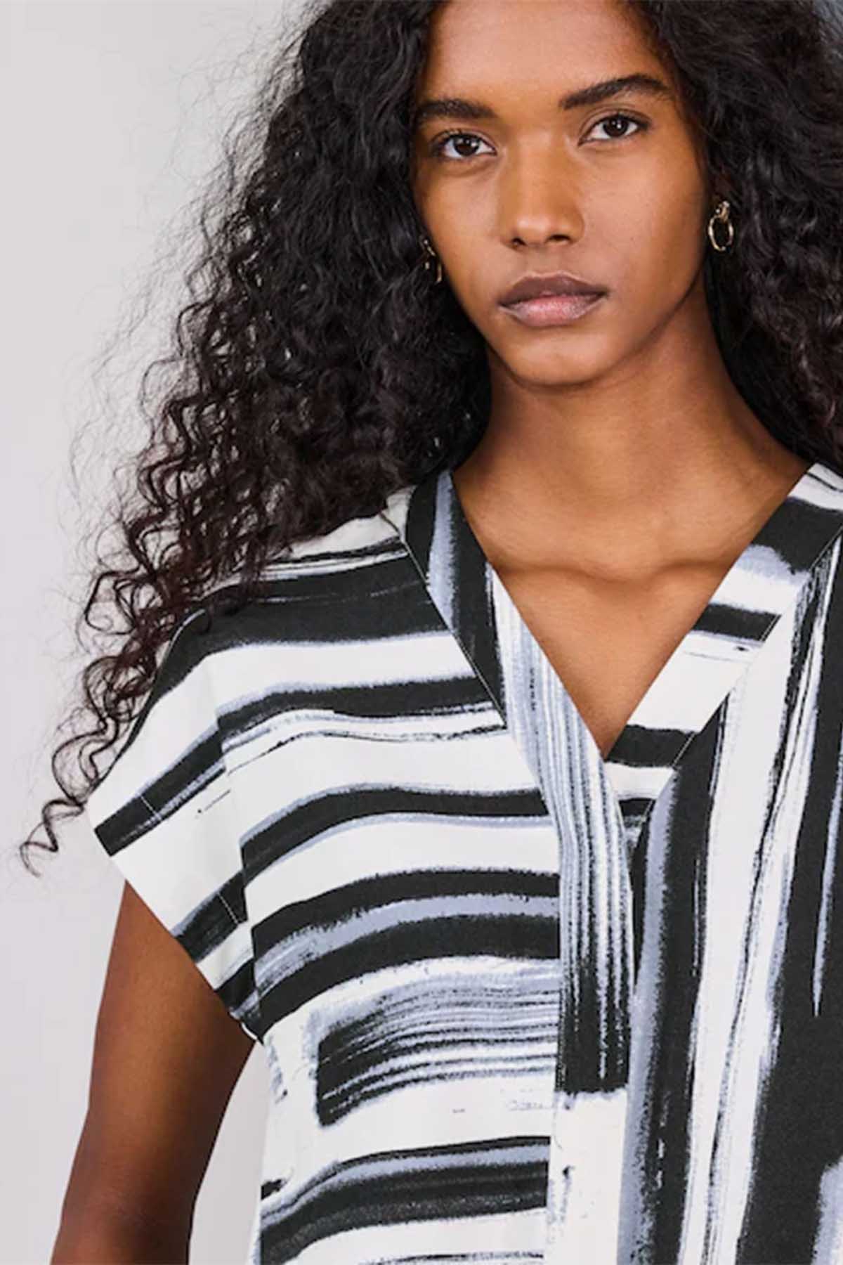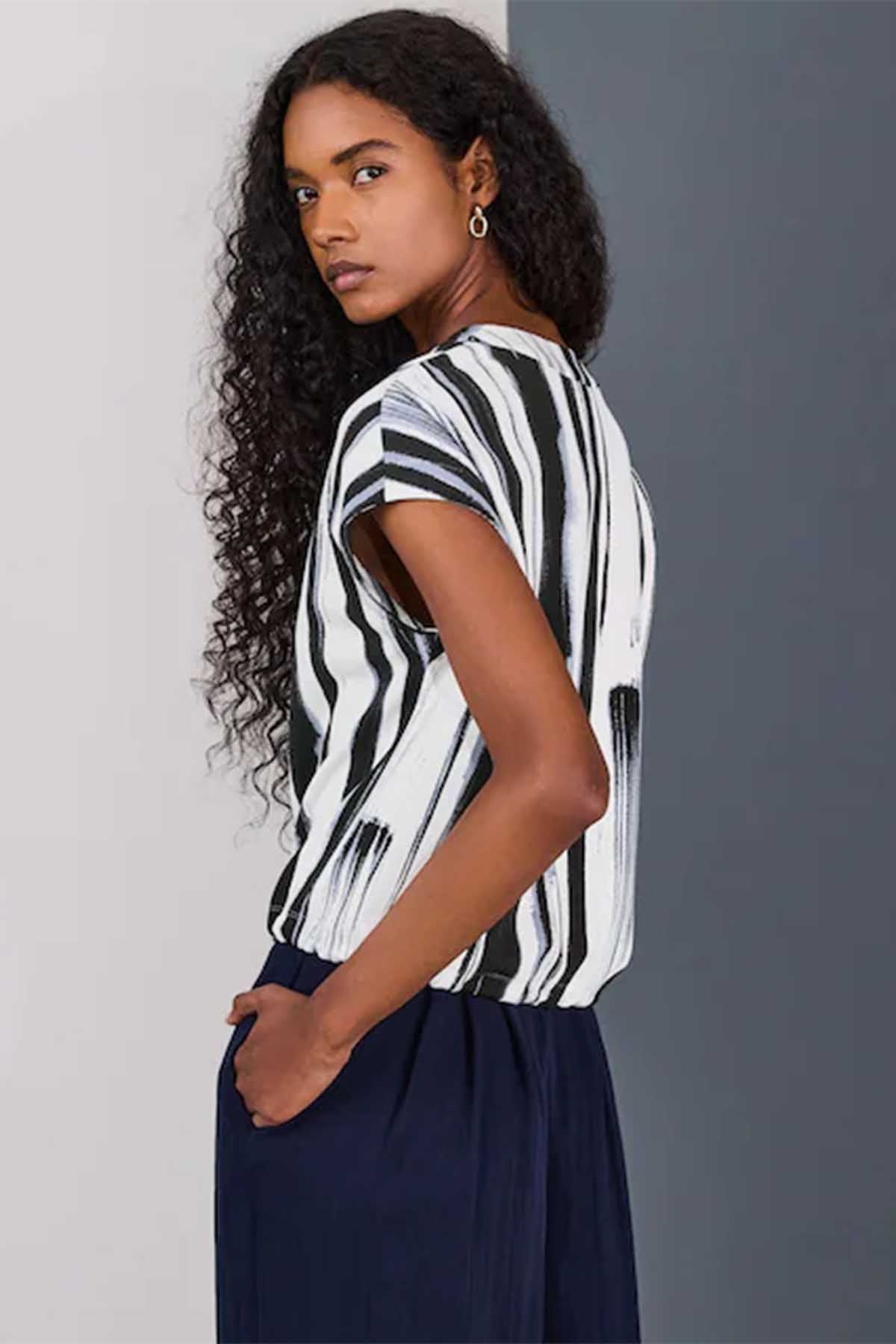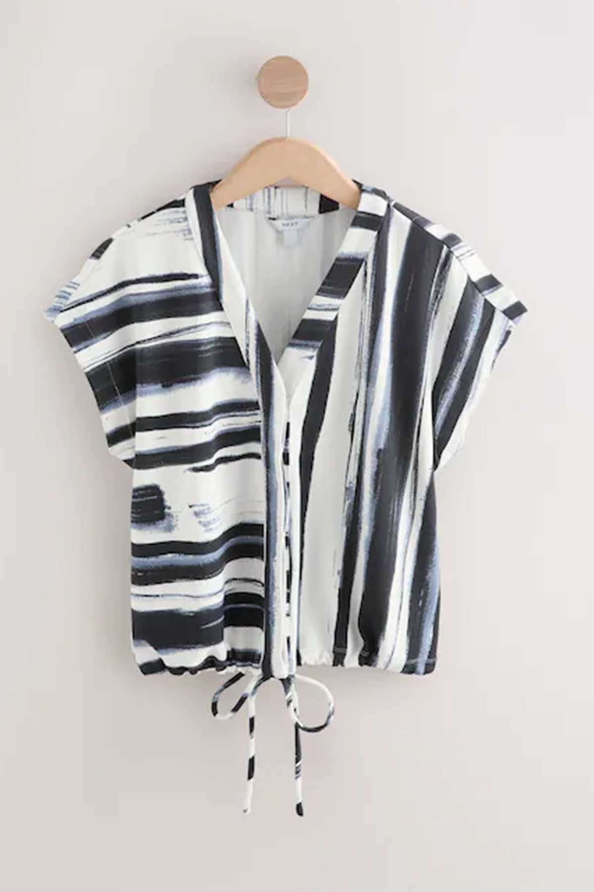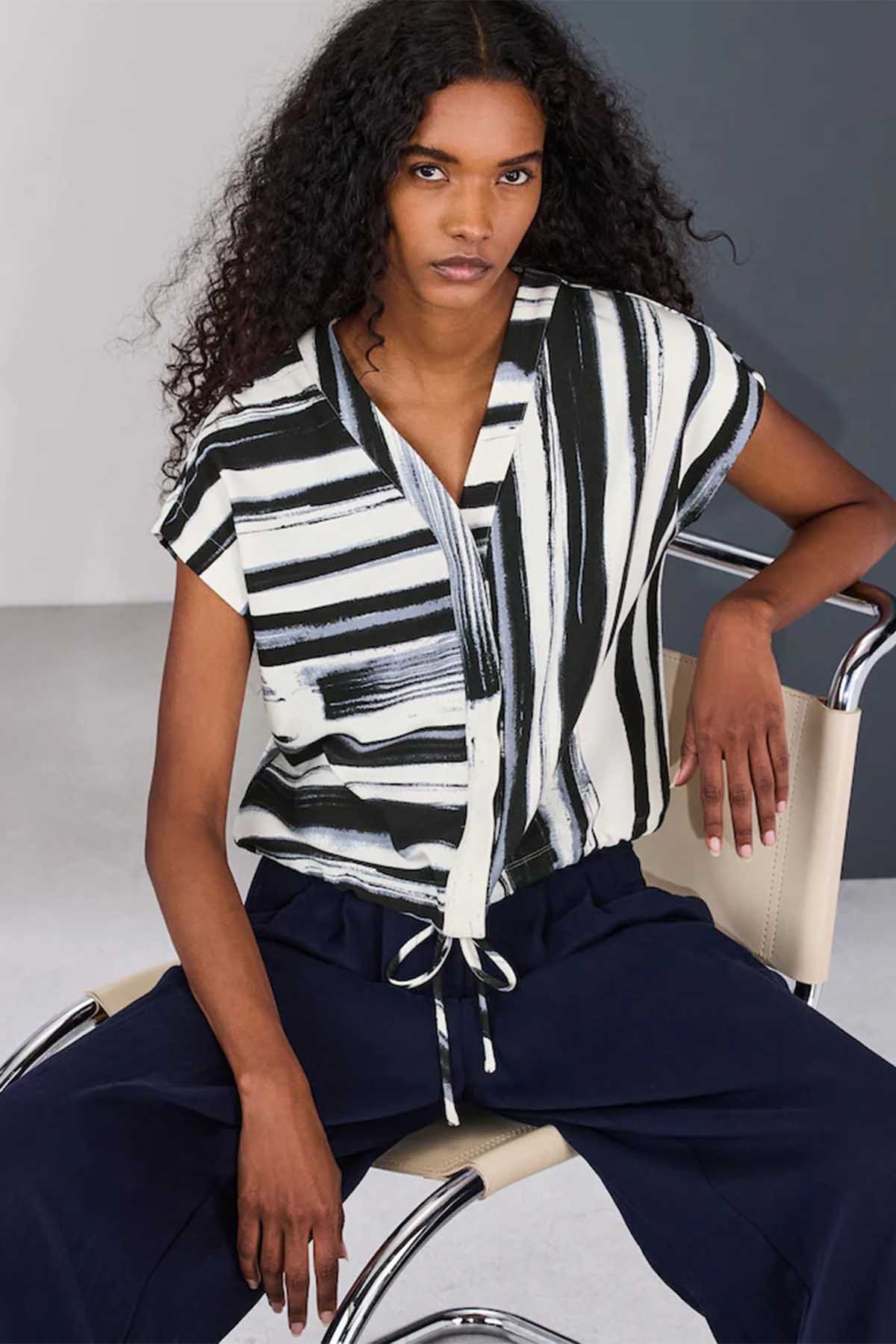 Navy/Black/White V-Neck Short Sleeved Tie Waist Top