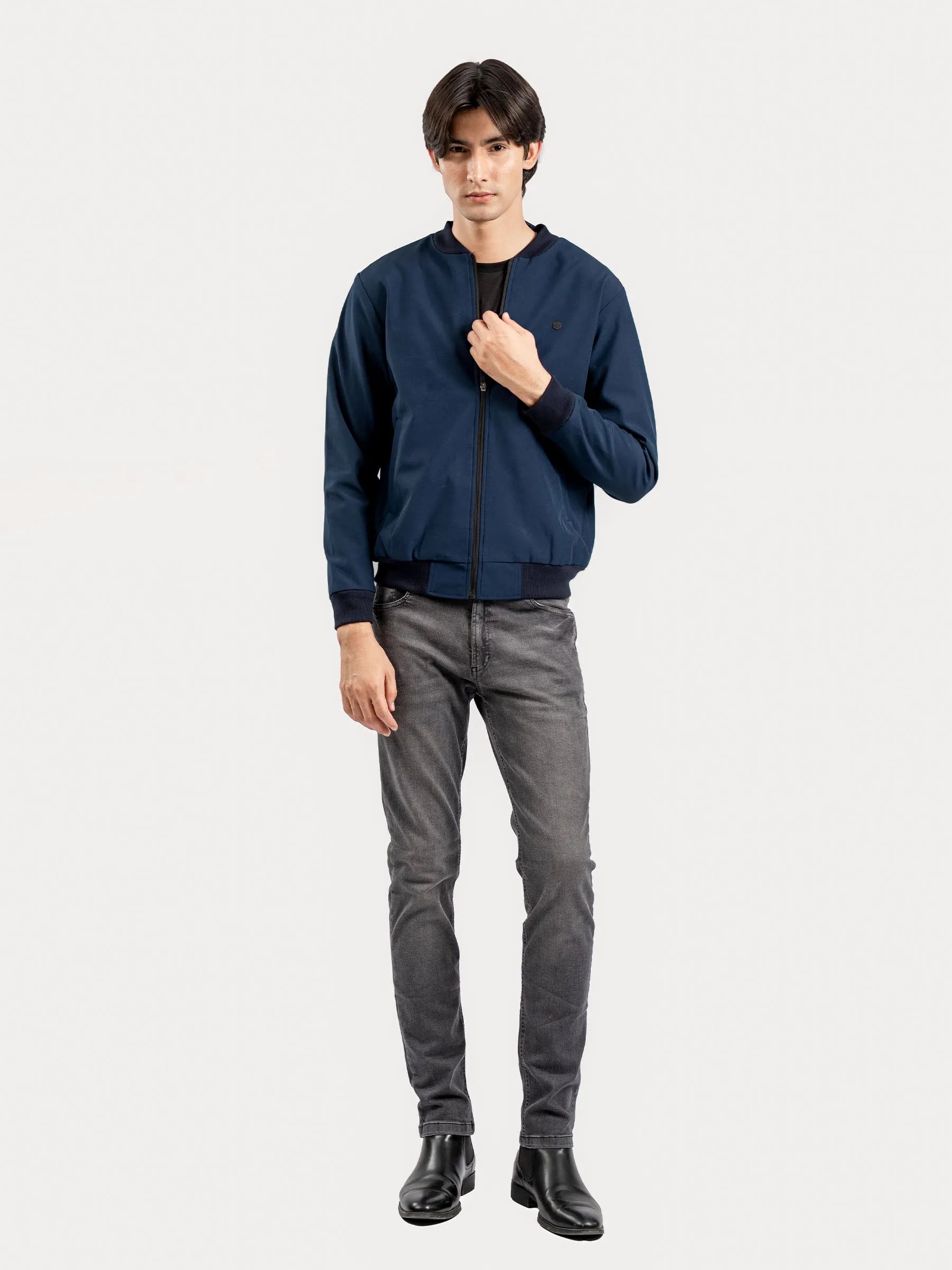 Clean & modern essential built for everyday wear. Crafted with a sleek finish and a comfortable fit, this navy blue bomber jacket features a classic zip-front design, ribbed cuffs and hem, and practical side pockets. Easy to style with tees, knits, or shirts for a sharp, effortless look