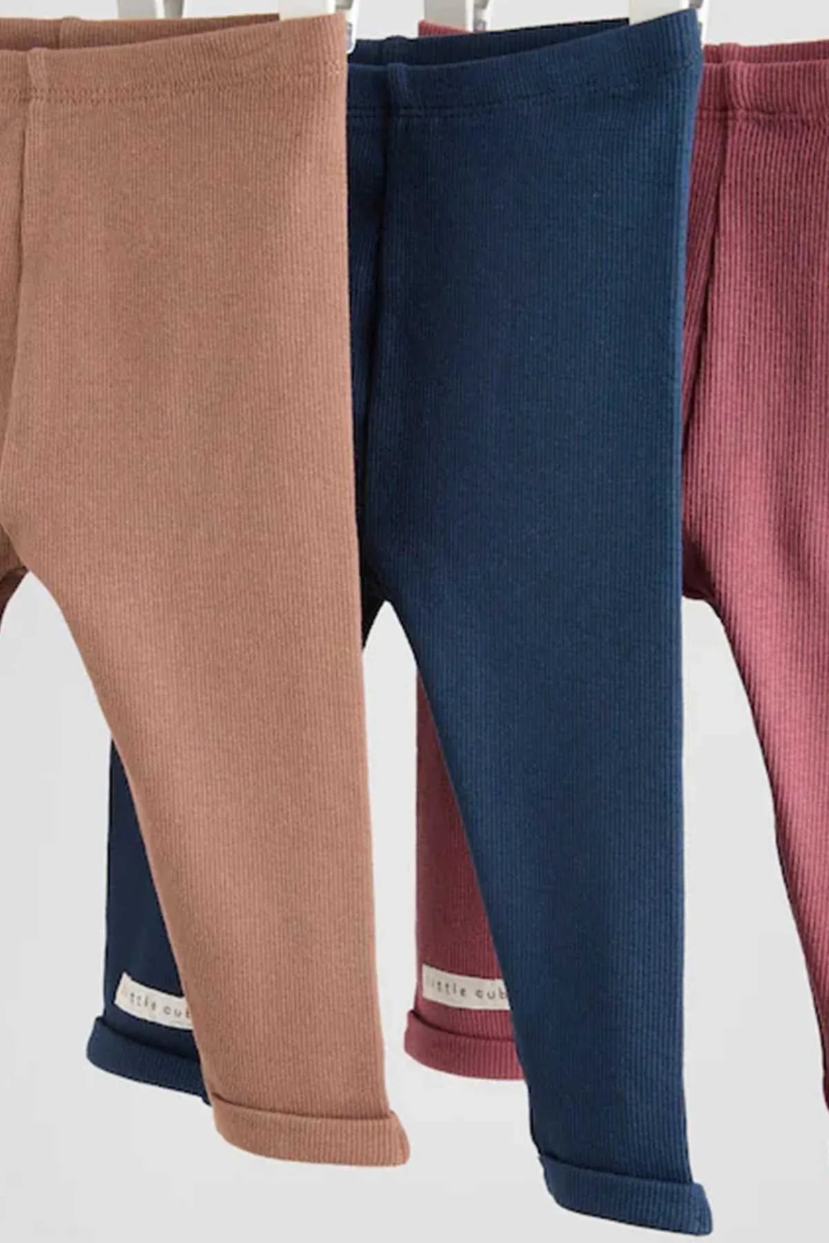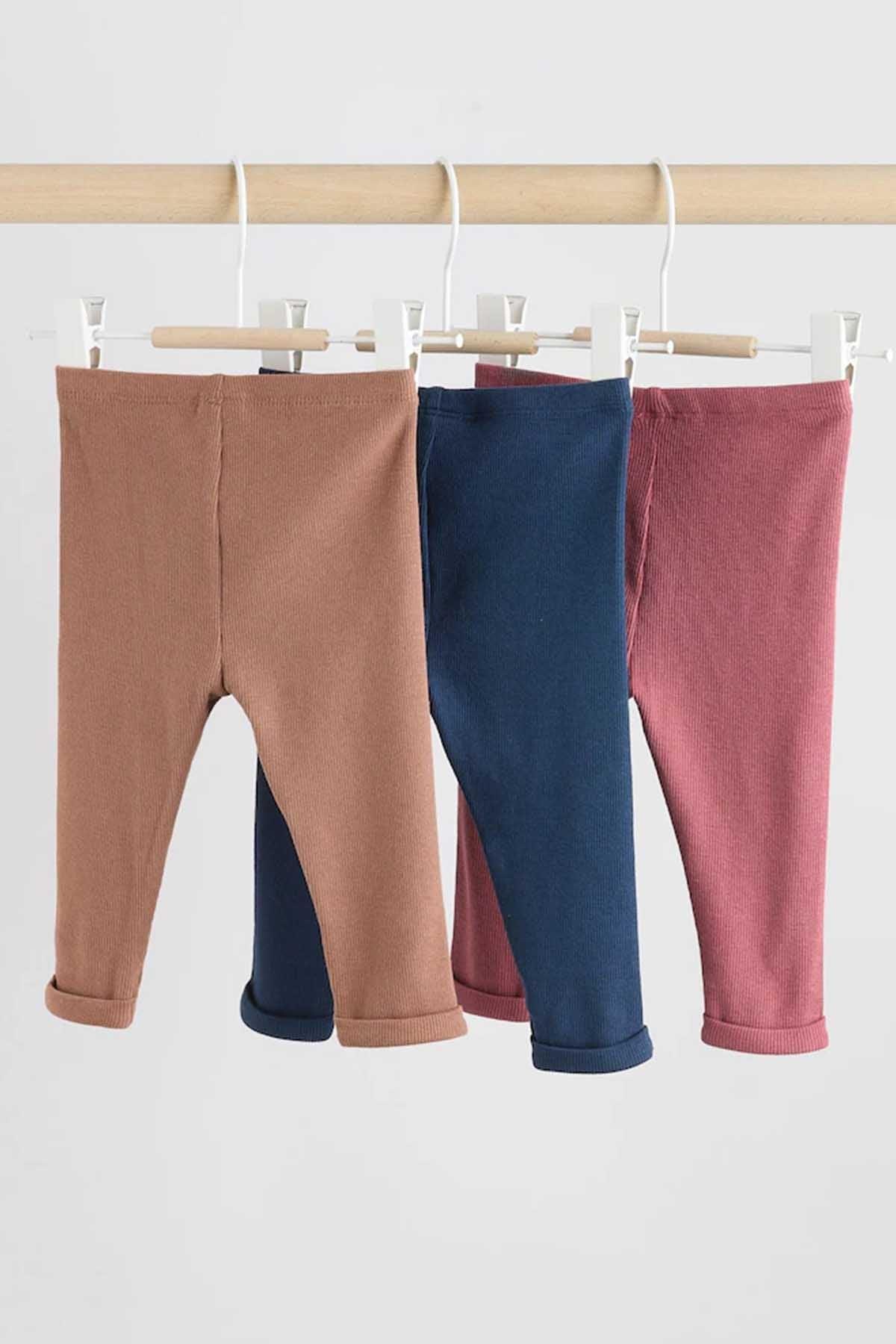 Navy Blue/Brown Baby Jersey Leggings 3 Pack (0mths-2yrs)