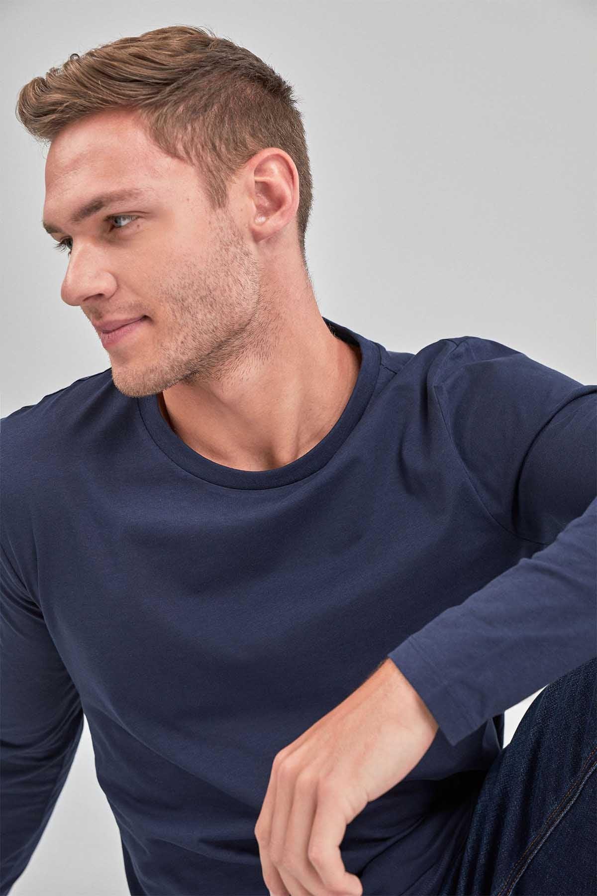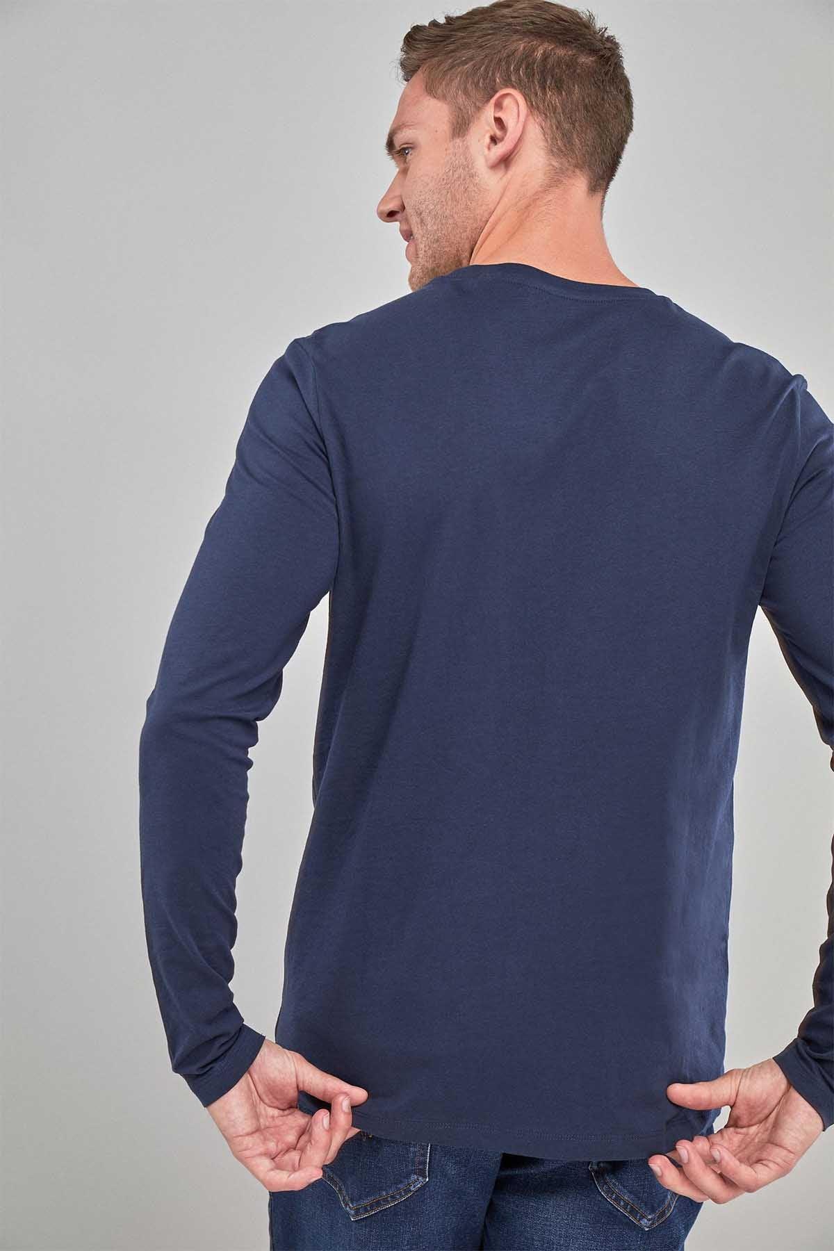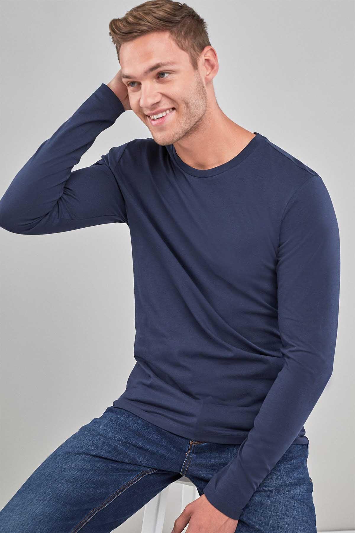 Navy Blue Regular Fit Long Sleeve Crew Neck T-Shirt