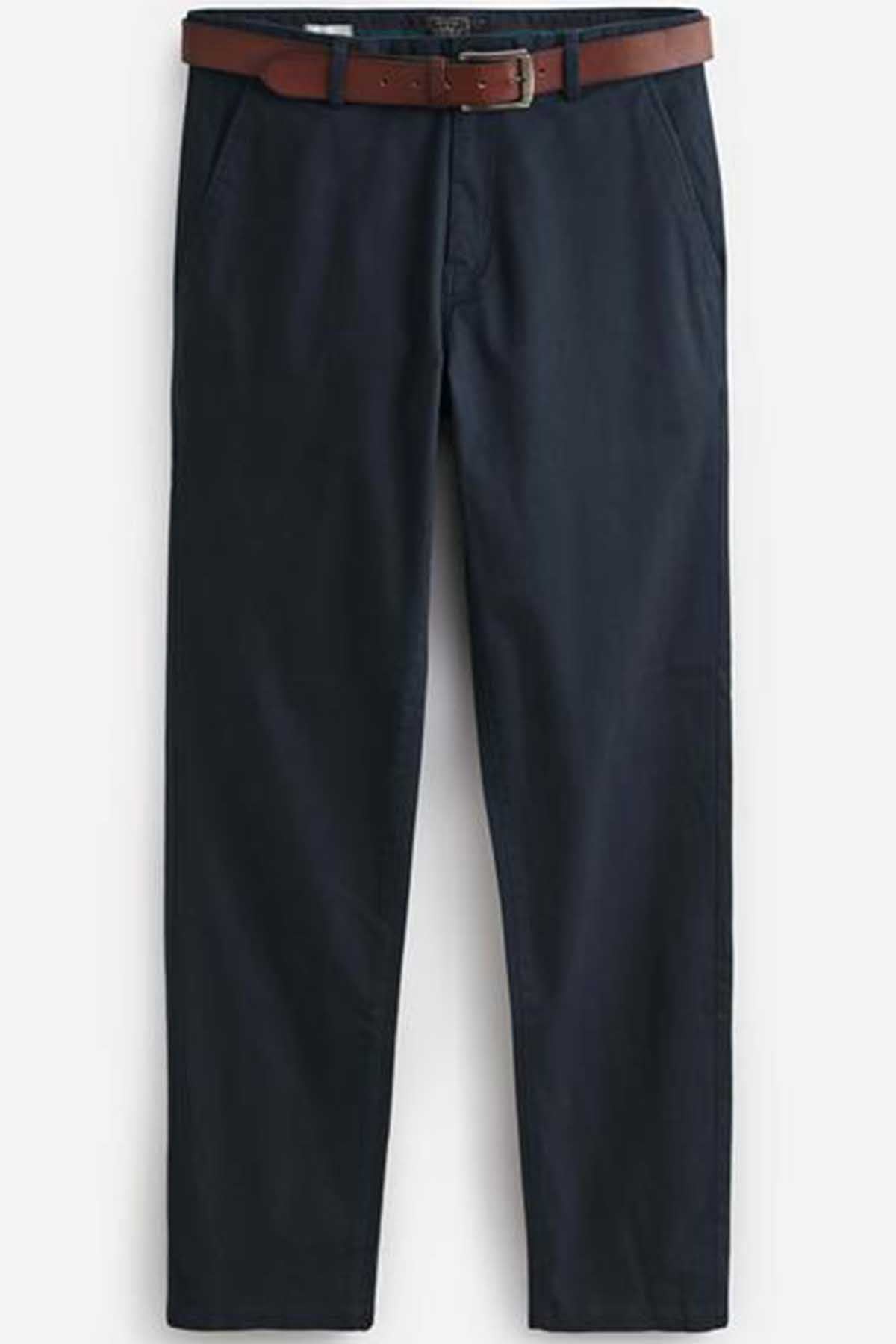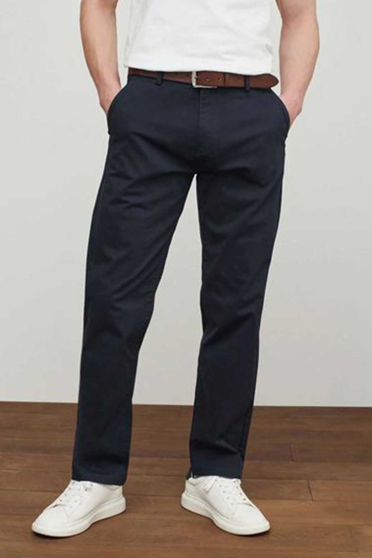 Navy Blue Straight Fit Belted Soft Touch Chino Trousers