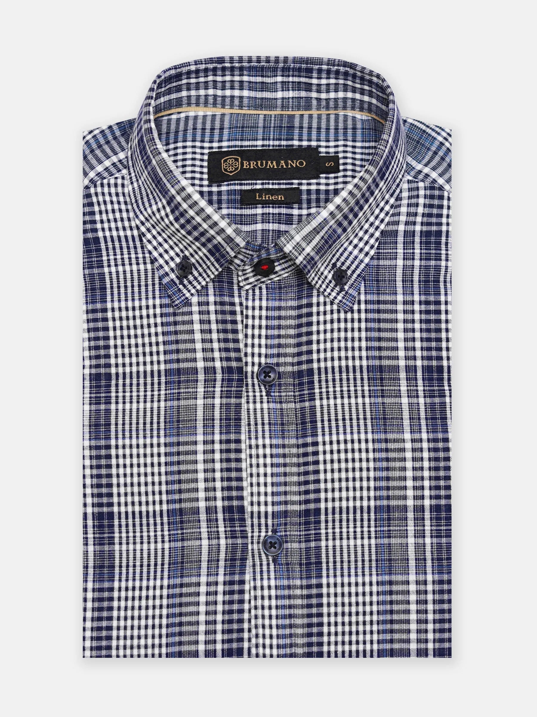 A timeless blend of comfort and style, this navy blue & white checkered shirt is crafted from a breathable linen blend for all-day ease. Designed with a clean, versatile look, it’s perfect for both casual outings and smart occasions. Pair it effortlessly with chinos or denim for a refined summer outfit.