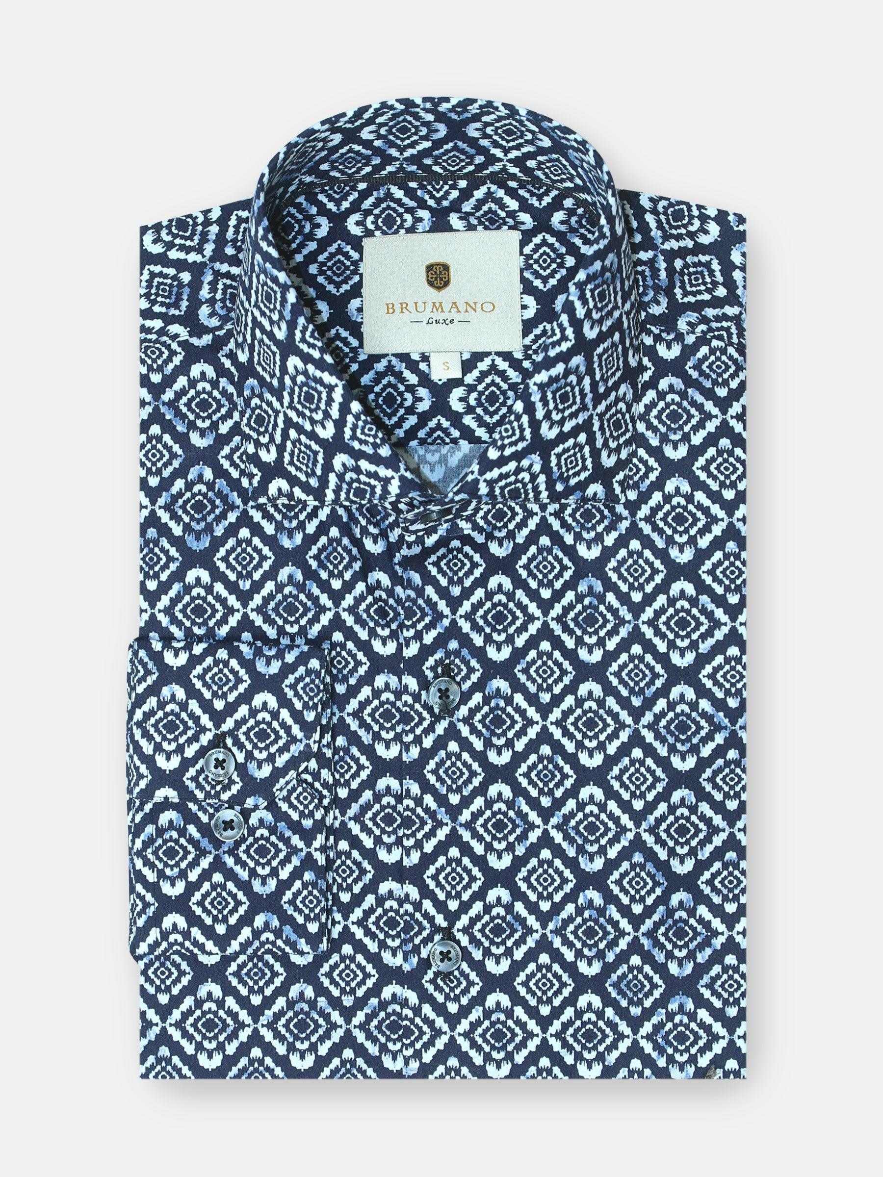A luxurious choice for an exclusive look, our navy blue & white motif printed shirt from Luxe collection is a must have this season. With its fun yet sophisticated print, this exclusive shirt exudes elegance and style for any occasion. Featuring shallow collar, branded buttons & inner collar ribbon detailing.