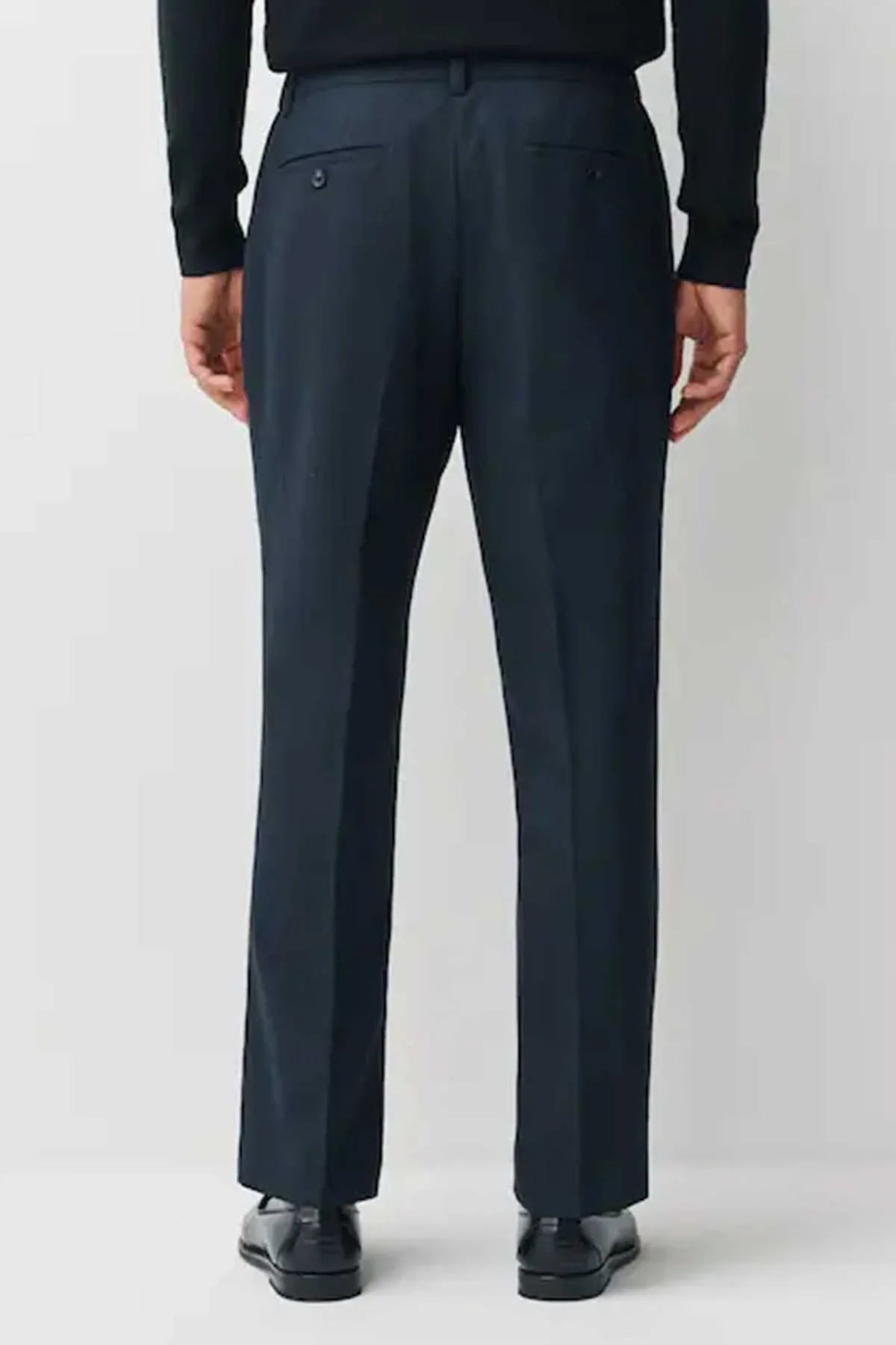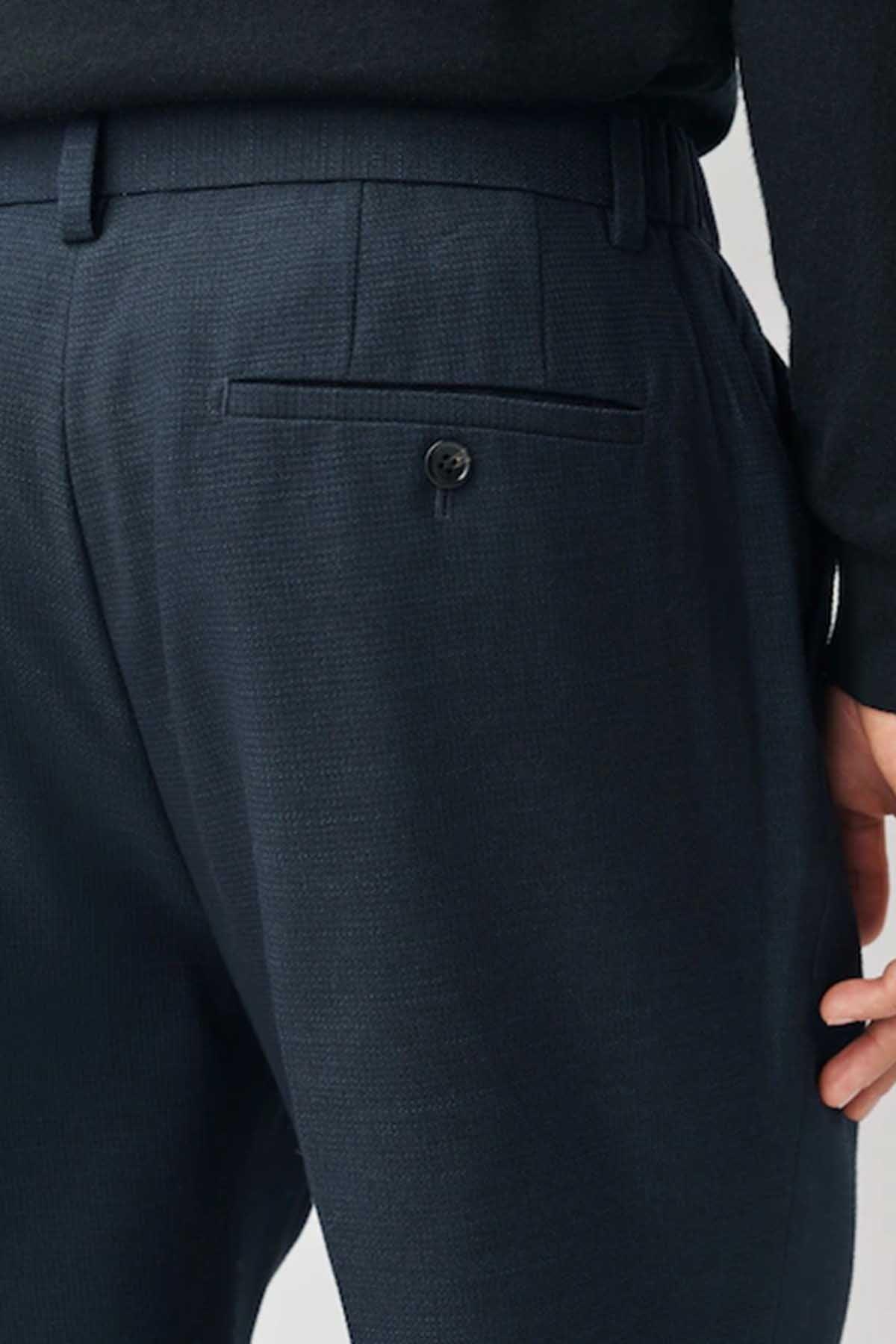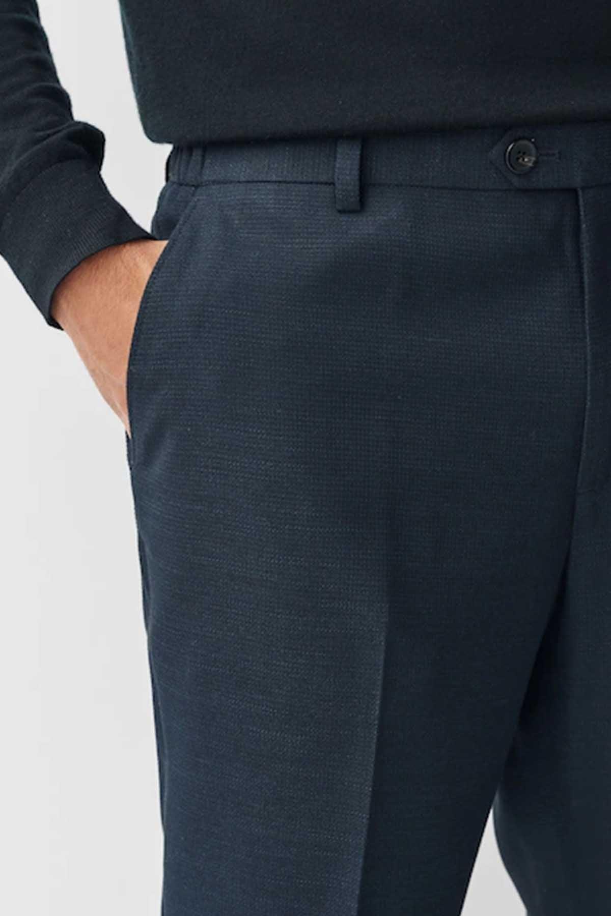 Navy Regular Fit Smart Textured Trousers With Stretch Waistband