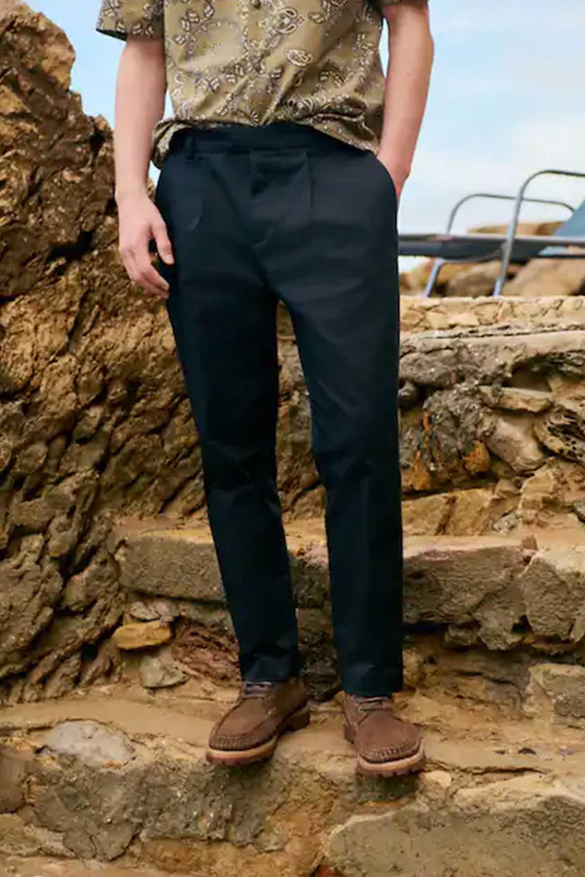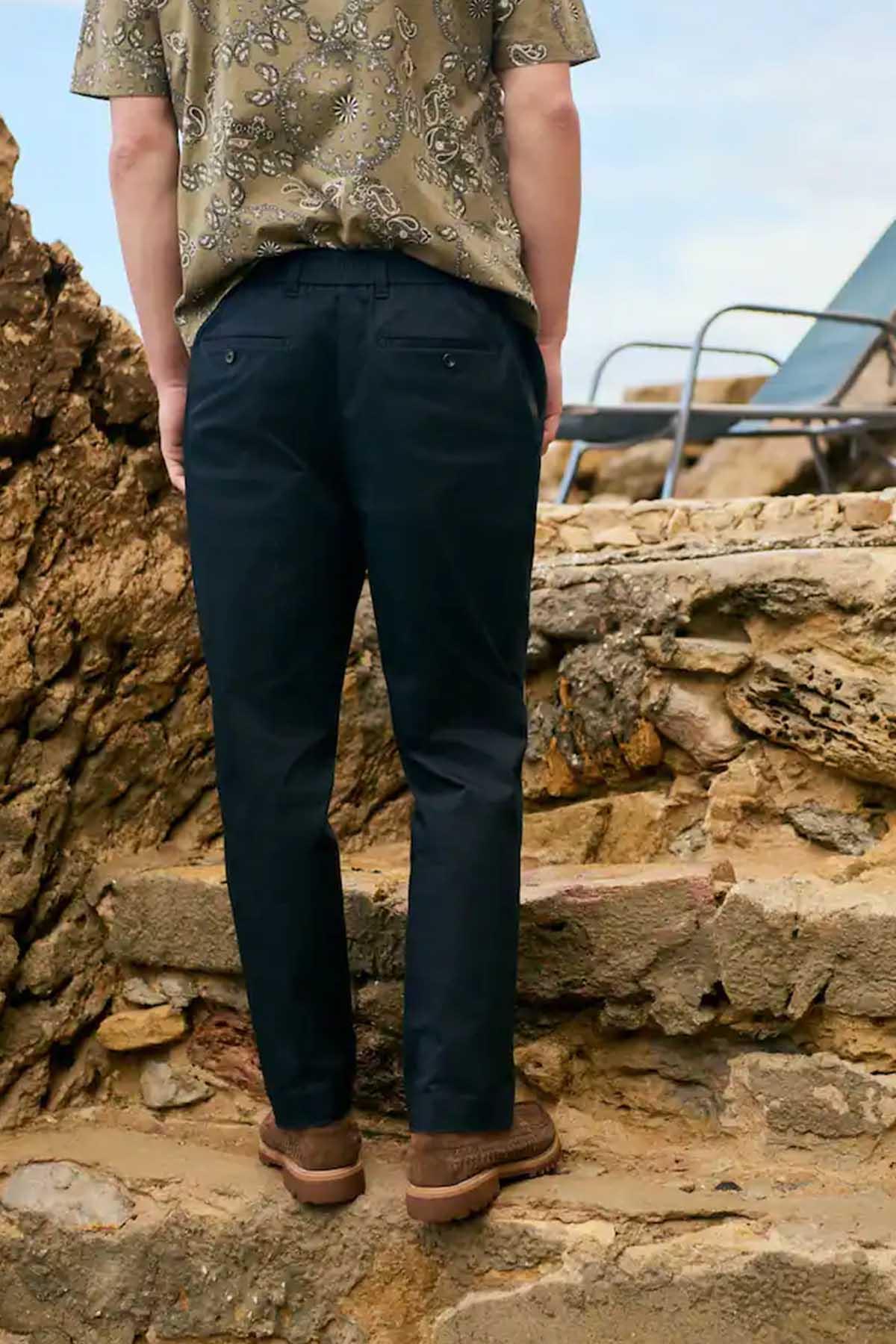 Navy Regular Tapered Fit Smart Cotton Chinos with Elasticated Back and Stretch