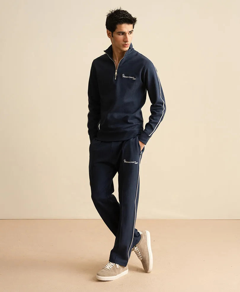 Relaxed luxury with a refined edge — this trouser co-ord set from our Monaco Resort Collection is crafted in premium interlock fabric for a smooth, structured feel and all-day comfort. Featuring a mock-neck zip top paired with matching trousers, it’s designed for effortless resort-style dressing with a modern silhouette.