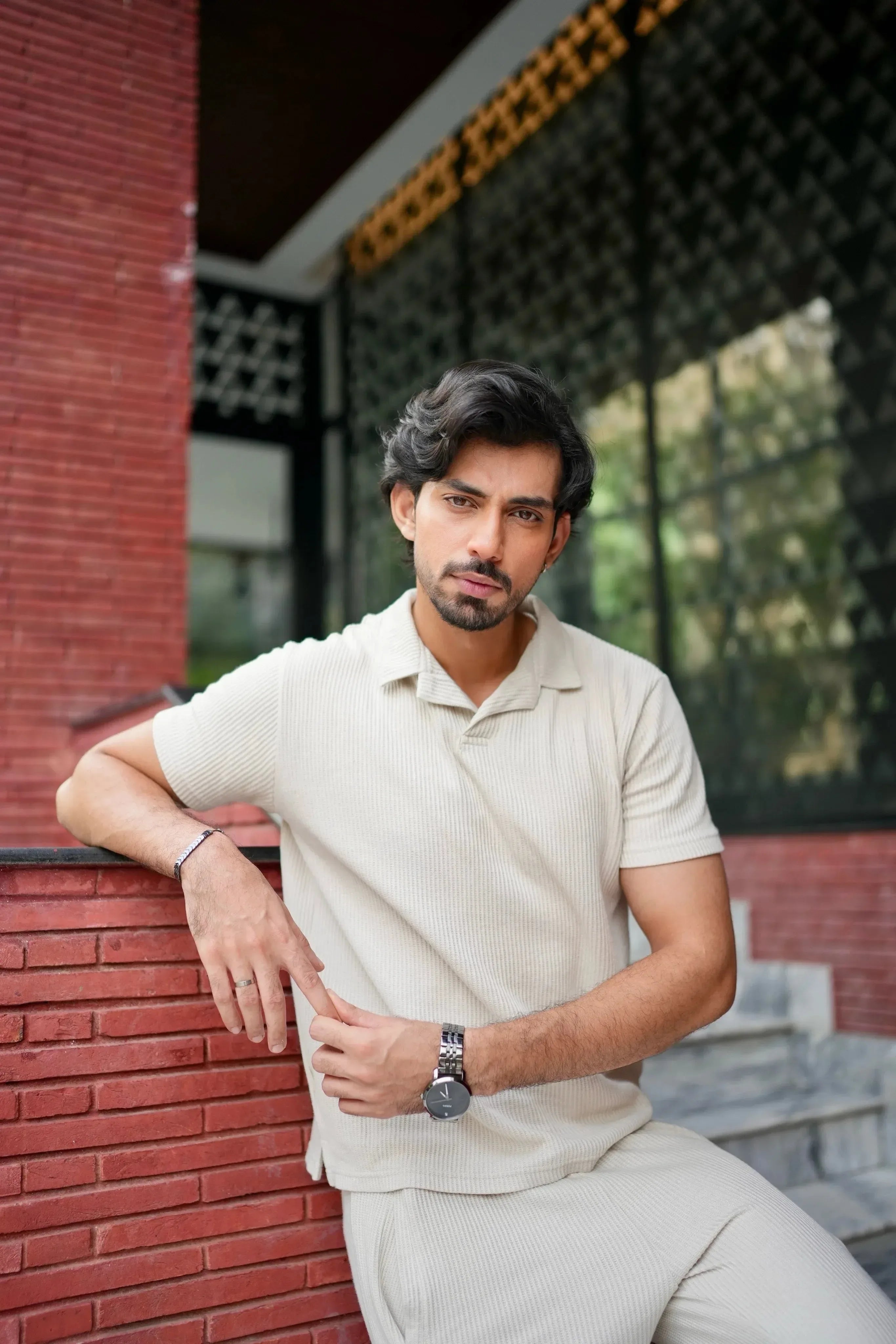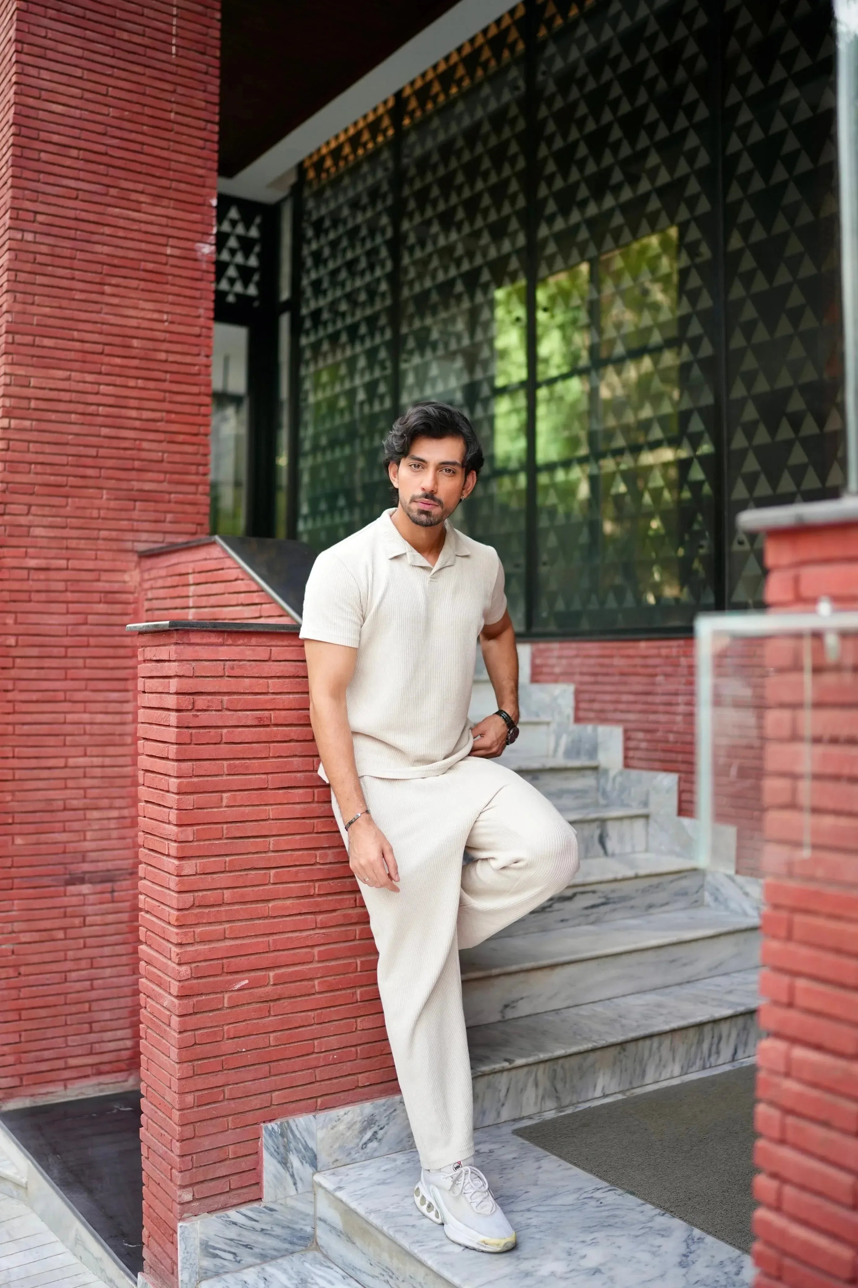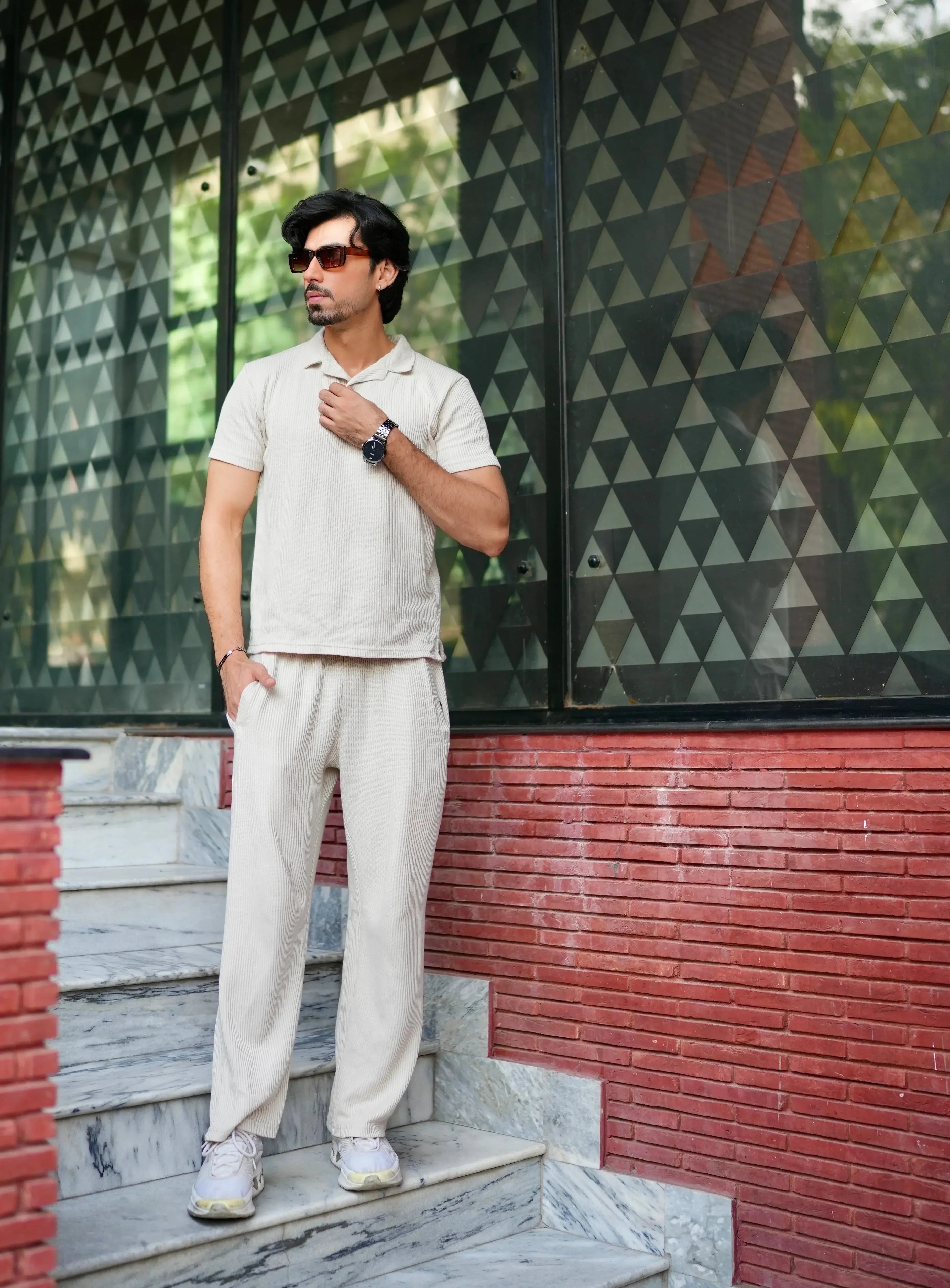 Off White Drop Needle Coord Set - 2PC - Men