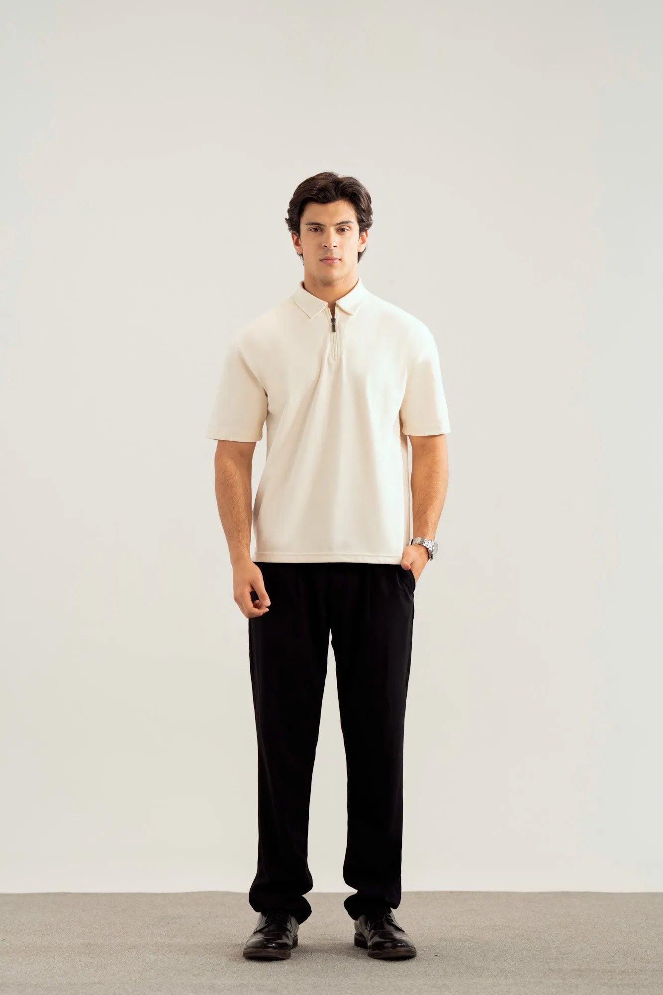 Off White Interlock Zipper Polo - Boxy Fit - Men