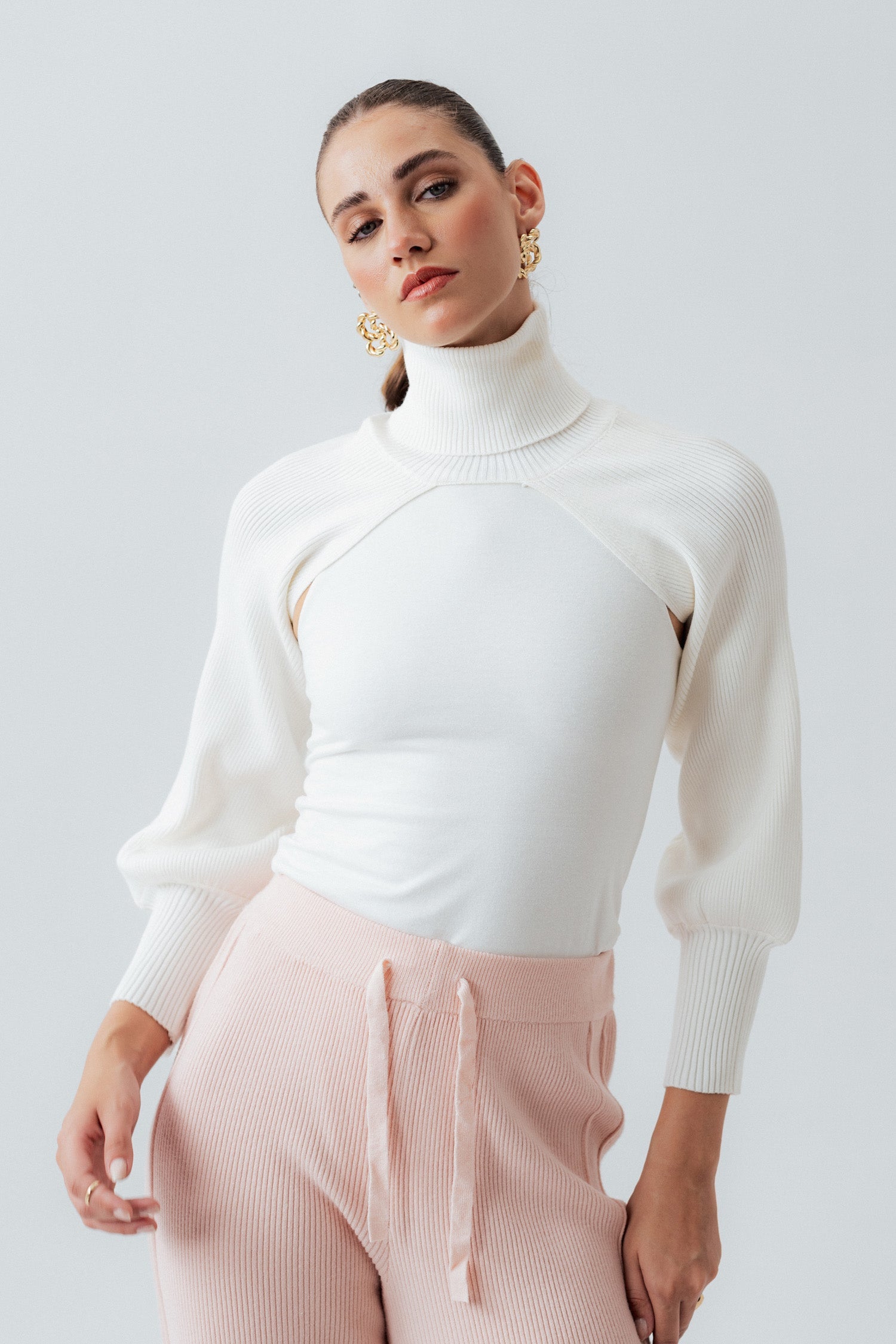 This OFF White Puff Sleeves Sweater is a must-have for your winter closet. Featuring puff sleeves, knitted arm warmers, and high neck, this knit sweater is a fashion-forward piece. Crafted from soft yarns, this knitted sweater for women can keep yourself warm, and stylish effortlessly.