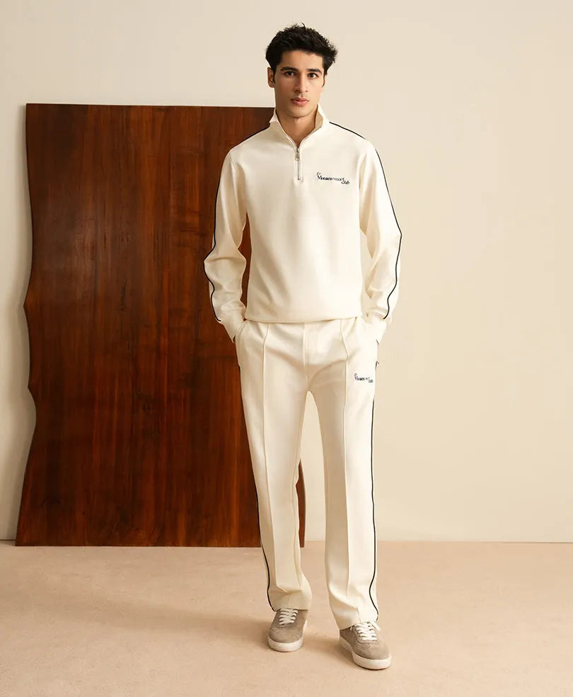 Relaxed luxury with a refined edge — this trouser co-ord set from our Monaco Resort Collection is crafted in premium interlock fabric for a smooth, structured feel and all-day comfort. Featuring a mock-neck zip top paired with matching trousers, it’s designed for effortless resort-style dressing with a modern silhouette.