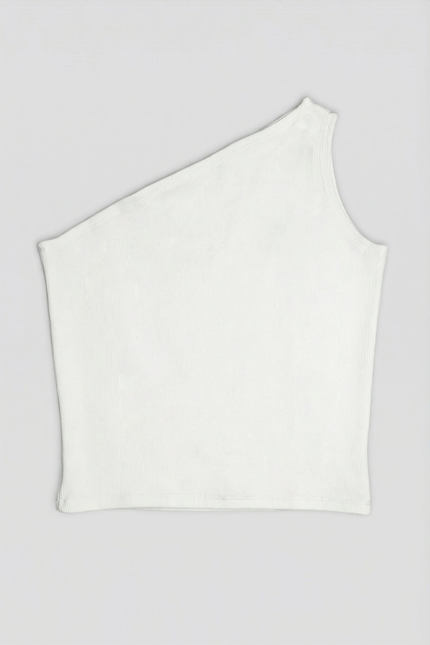 Slim-fit ribbed top with an asymmetrical neckline for a modern, edgy look.