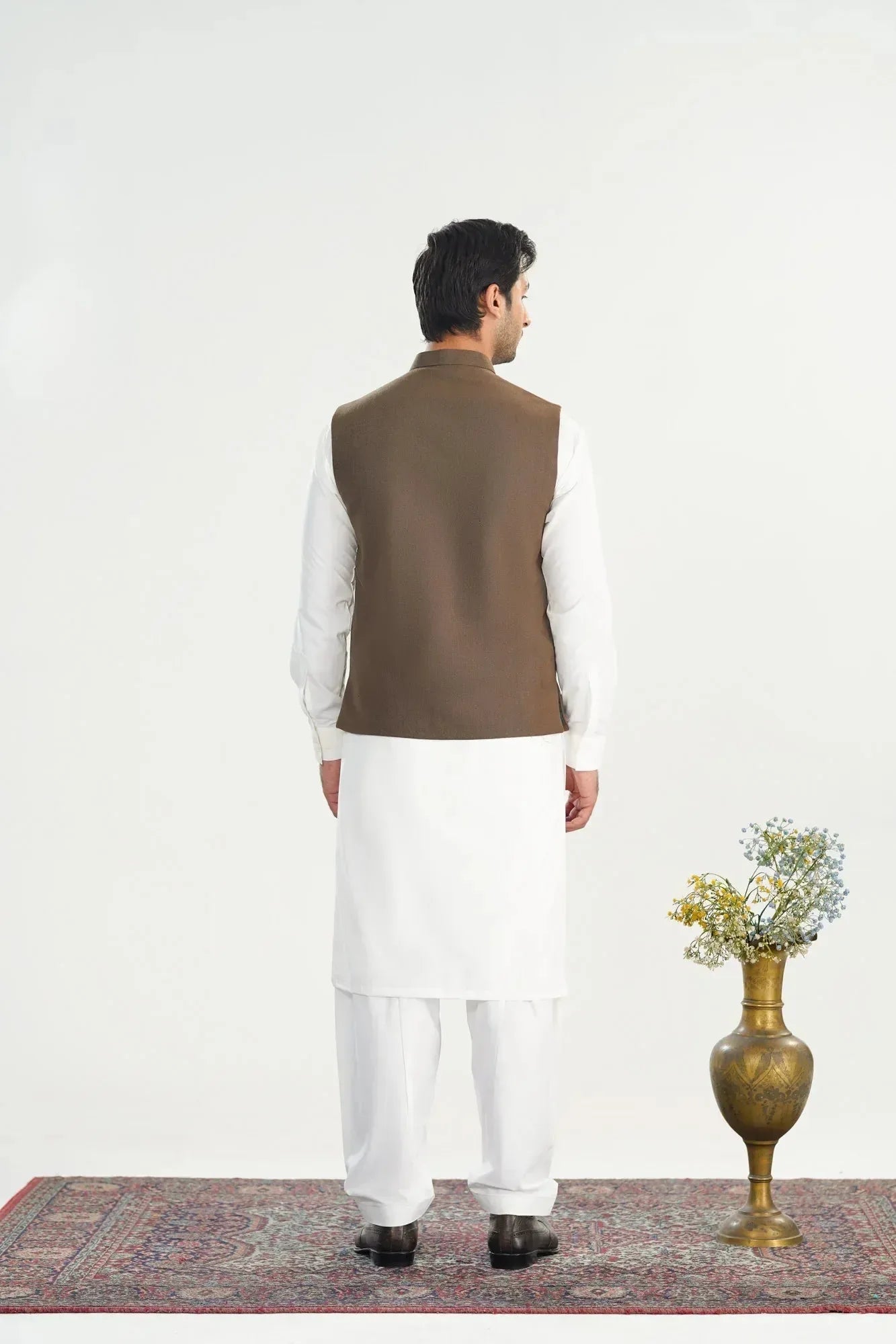 Olive Brown Handloomed Khaddar Waistcoat - Straigth Cut - Men