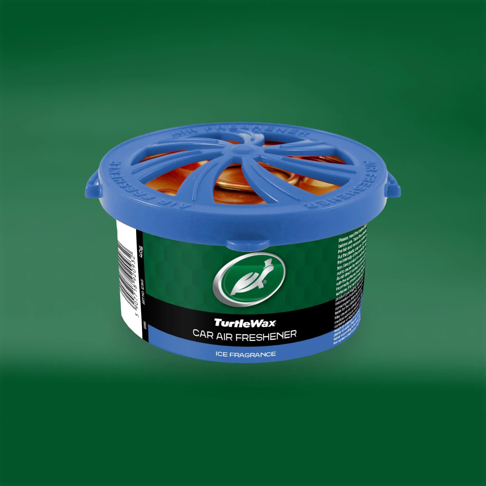 Introducing the Turtle Wax Air Freshener in Ice, featuring innovative Organic Fiber Technology for a natural and intense aroma experience. Developed under the Turtle Wax® license, this air freshener boasts an elegant design, seamlessly blending with your car interior while delivering the invigorating scent of ice. The fragrance is released through carefully designed holes in the plastic cap, ensuring a controlled and consistent distribution. Crafted with organic fibers and sealed in an aluminum can, it offers a sustainable and environmentally friendly option. Enjoy the convenience of versatile placement options and a user-friendly application for an extended period of long-lasting freshness. Turtle Wax Air Freshener in Organic - Ice: where technology meets nature.