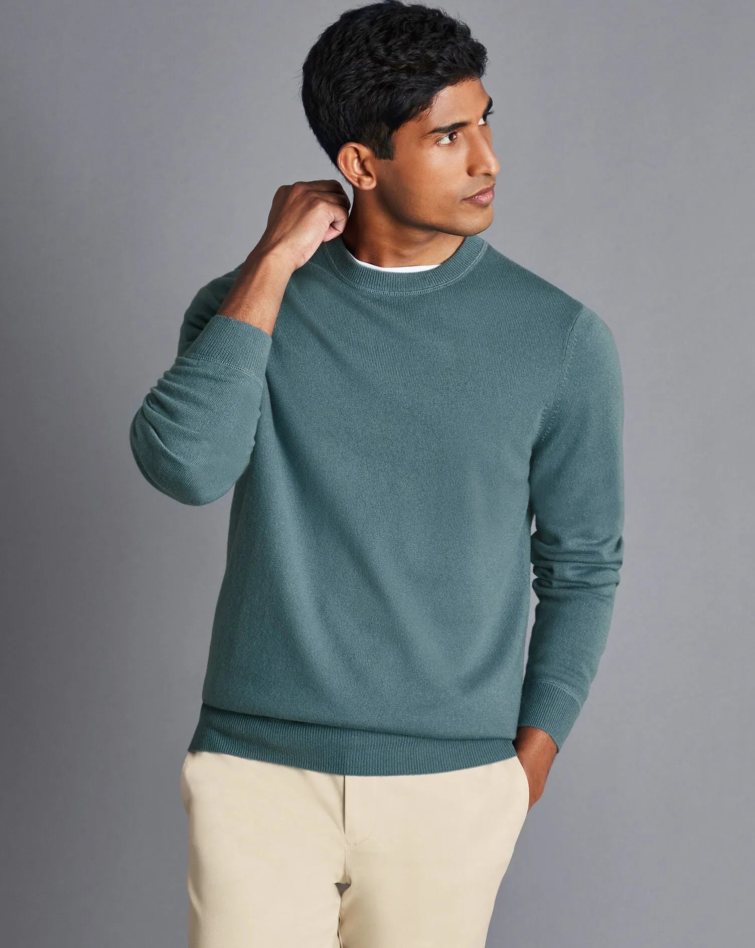 Pale Teal Green Merino/Cashmere Crew Neck Jumper